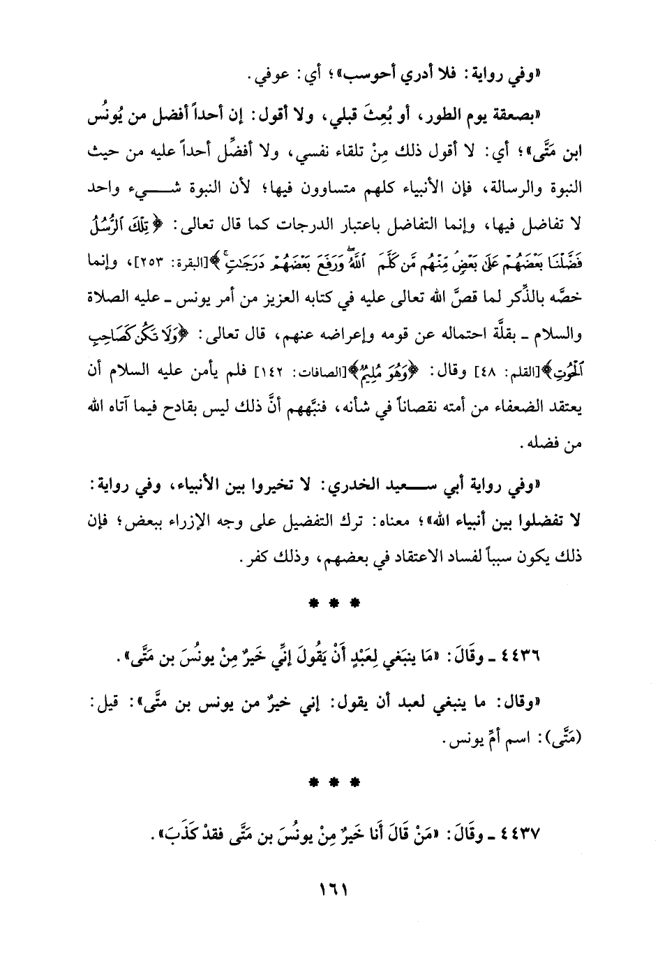 4436 - وقَالَ: " مَا ينبَغي لِعَبْدٍ أَنْ يَقُولَ إنِّي خَيرٌ مِنْ يونُسَ بن مَتَّى ".