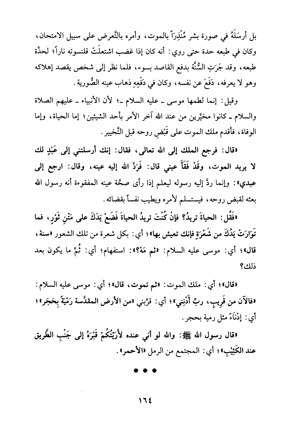 " قال رسول الله - صلى الله عليه وسلم -: والله لو أني عنده لأَرَيْتُكُمْ قَبْرَهُ إلى جَنْبِ الطَّريق عند الكَثِيْبِ "؛ أي: المجتمع من الرمل " الأحمر ".