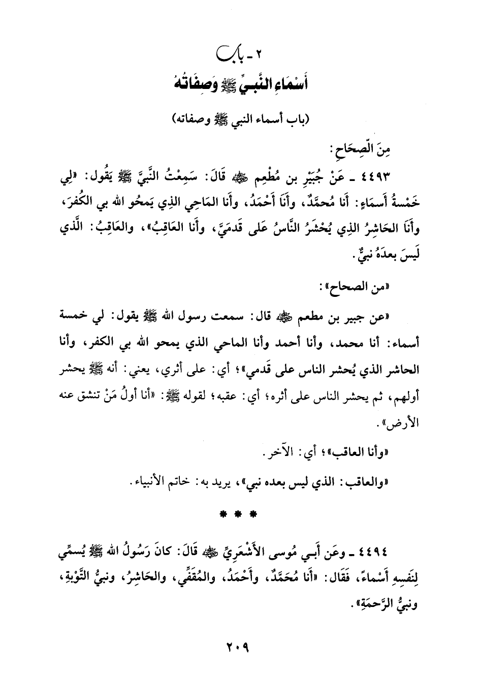 2 - باب أَسْمَاءِ النَّبيِّ - صلى الله عليه وسلم - وَصِفَاتُهُ
