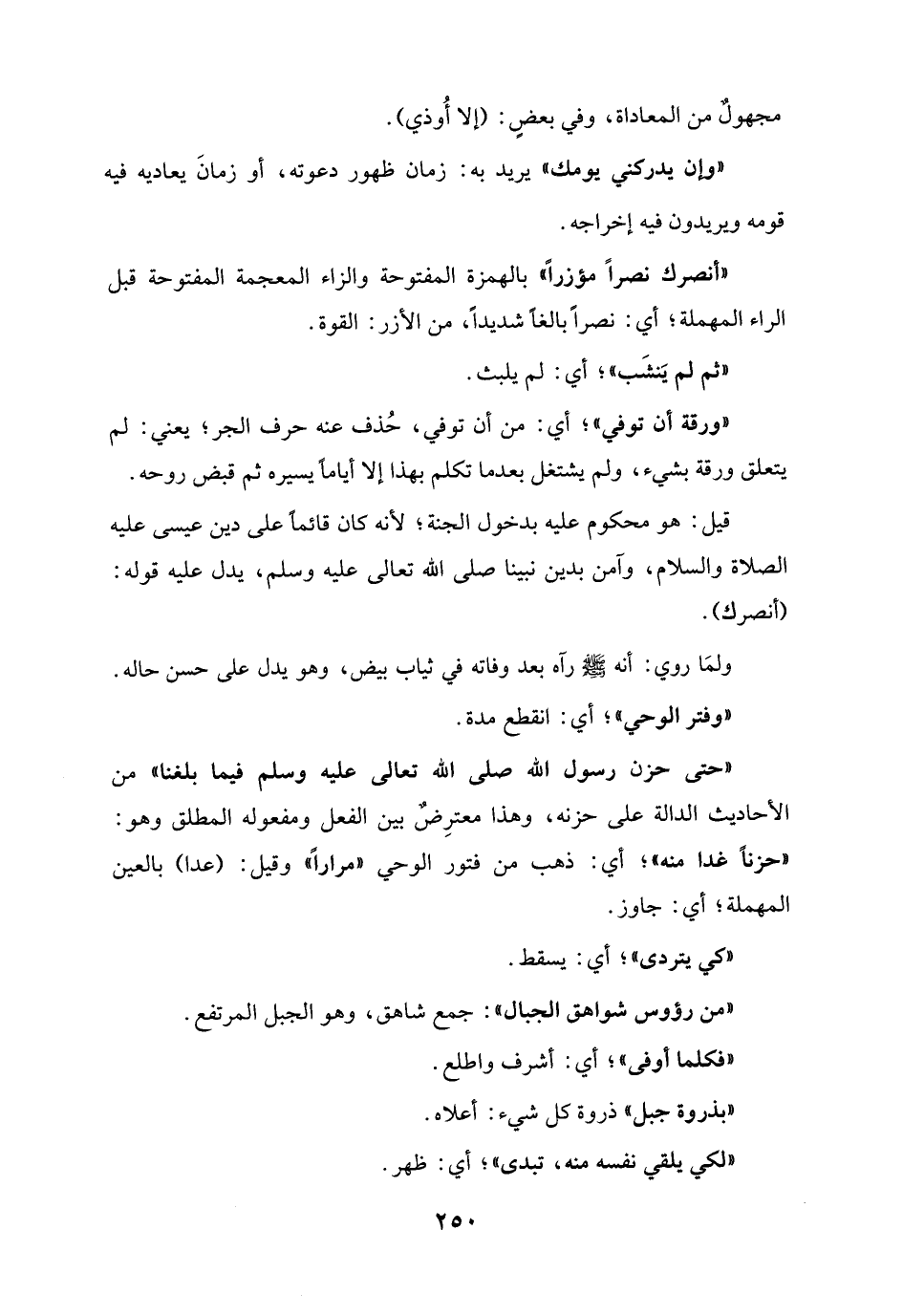 "حتى حزن رسول الله صلى الله تعالى عليه وسلم فيما بلغنا" من الأحاديث الدالة على حزنه، وهذا معترِضٌ بين الفعل ومفعوله المطلق وهو: "حزناً غدا منه"؛ أي: ذهب من فتور الوحي "مراراً" وقيل: (عدا) بالعين المهملة؛ أي: جاوز.
