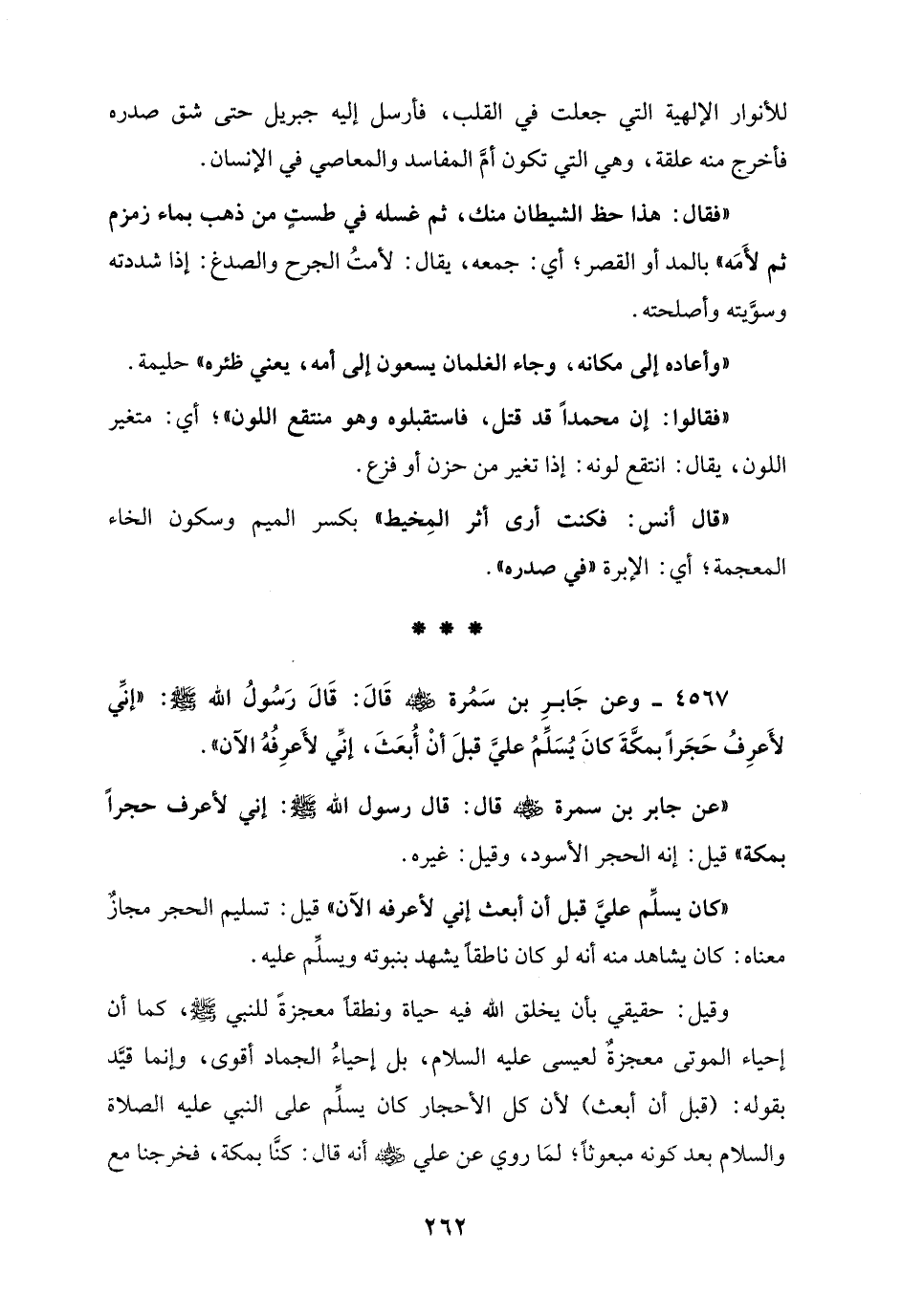 4567 - وعن جَابرِ بن سَمُرة - رضي الله عنه - قَالَ: قَالَ رَسُولُ الله - صلى الله عليه وسلم -: "إنِّي لأَعرِفُ حَجَراً بمكَّةَ كانَ يُسَلِّمُ عليَّ قبلَ أنْ أُبعَثَ، إنِّي لأَعرِفُهُ الآن".