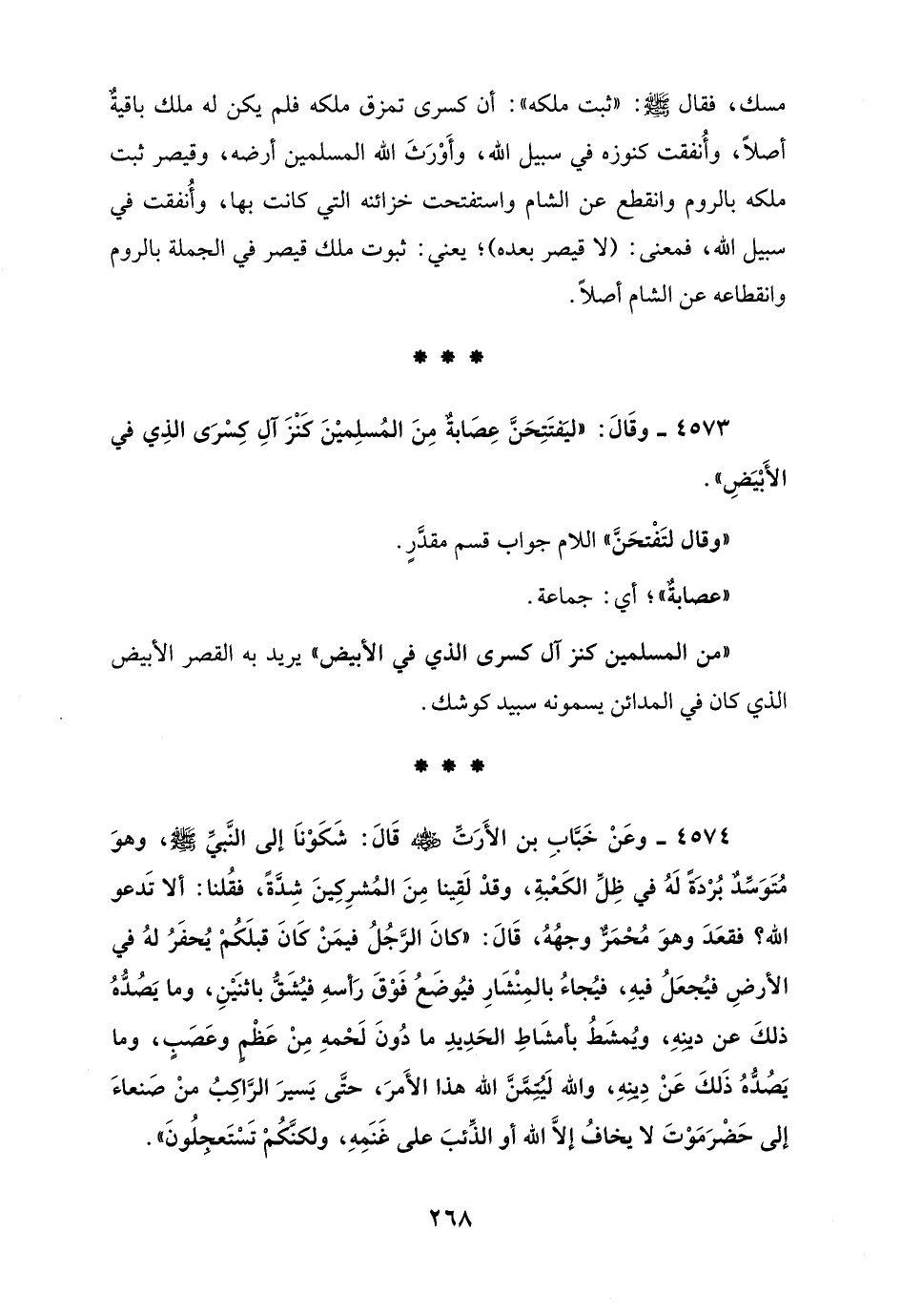 4573 - وقَالَ: "ليَفتَتِحَنَّ عِصَابةٌ مِنَ المُسلِميْنَ كَنْزَ آلِ كِسْرَى الذِي في الأَبْيَضِ".