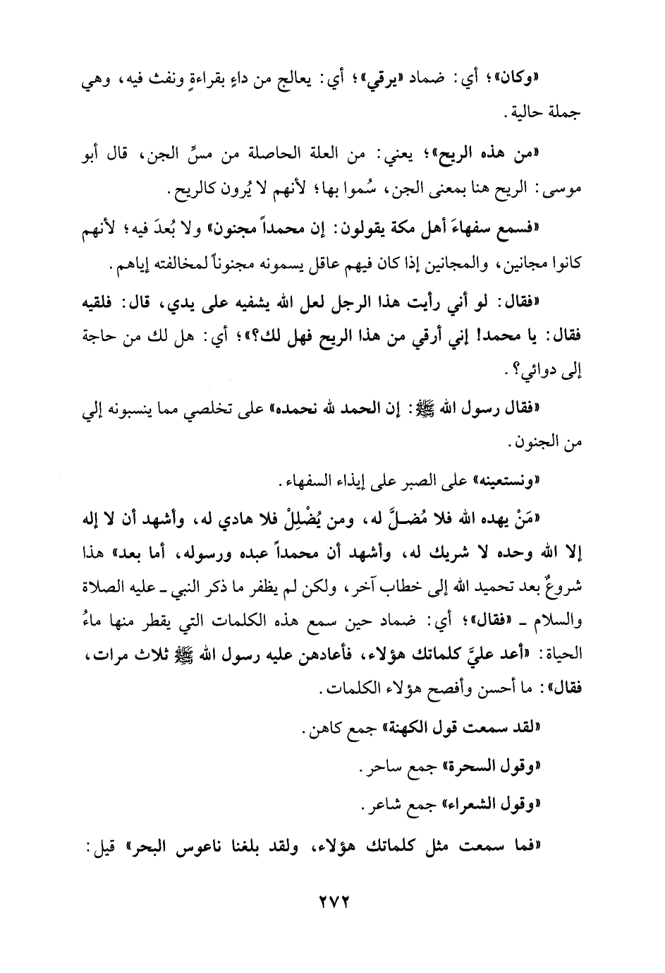 "فقال رسول الله - صلى الله عليه وسلم -: إن الحمد لله نحمده" على تخلصي مما ينسبونه إلي من الجنون.