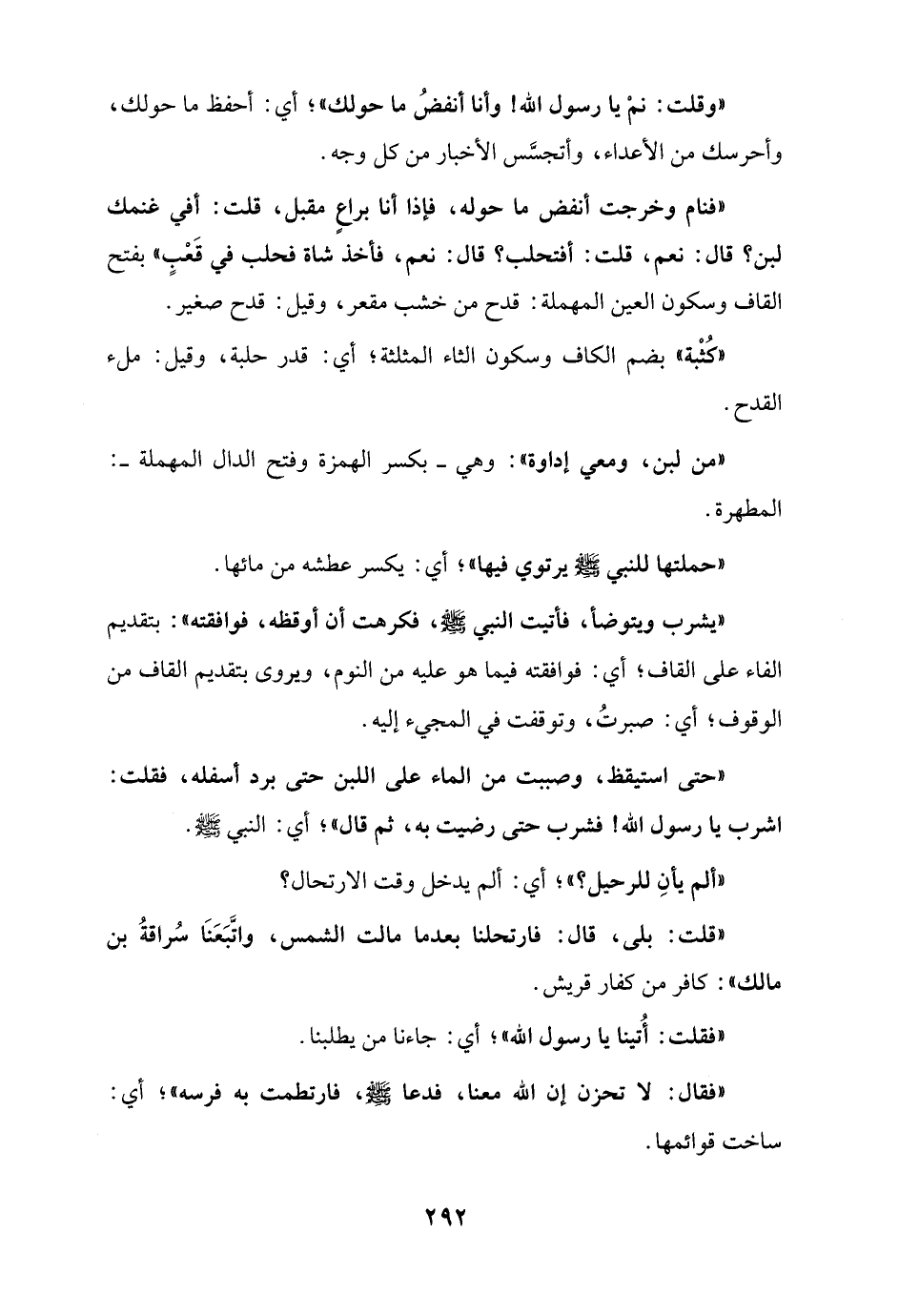 "فنام وخرجت أنفض ما حوله، فإذا أنا براعٍ مقبل، قلت: أفي غنمك لبن؟ قال: نعم، قلت: أفتحلب؟ قال: نعم، فأخذ شاة فحلب في قَعْبٍ" بفتح القاف وسكون العين المهملة: قدح من خشب مقعر، وقيل: قدح صغير.