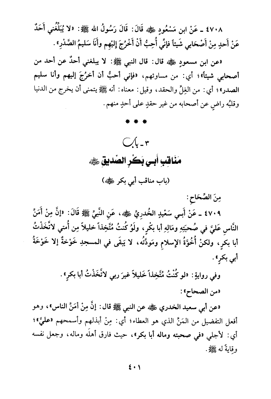 3 - باب مَناقِبِ أَبي بَكرٍ الصِّديقِ - رضي الله عنه -