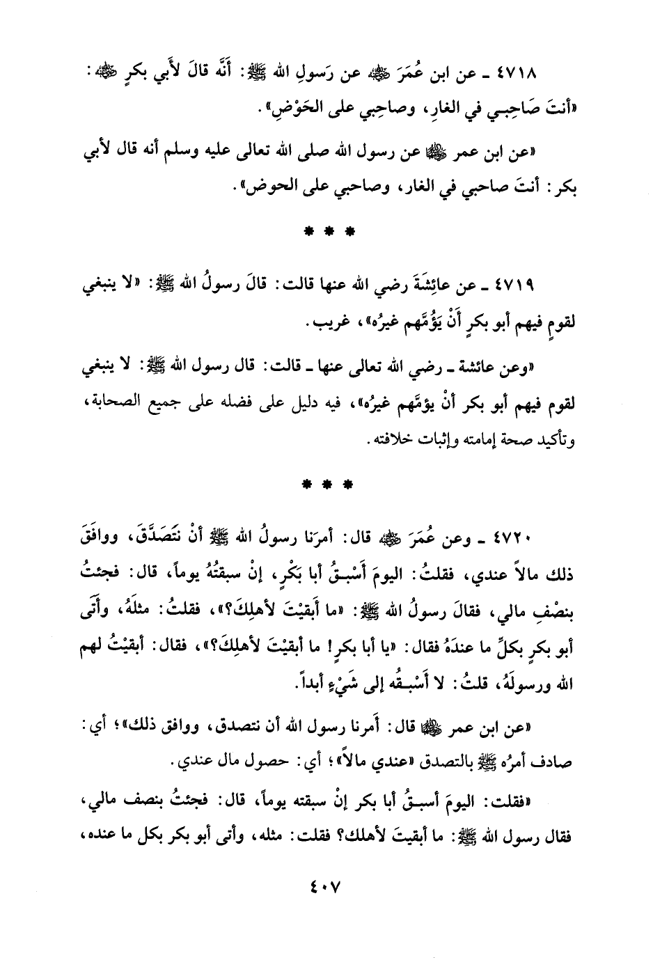 4718 - عن ابن عُمَرَ - رضي الله عنه - عن رَسولِ الله - صلى الله عليه وسلم -: أَنَّه قَالَ لأَبي بكرٍ - رضي الله عنه -: "أنتَ صاحِبي في الغارِ، وصاحِبي على الحَوْضِ".