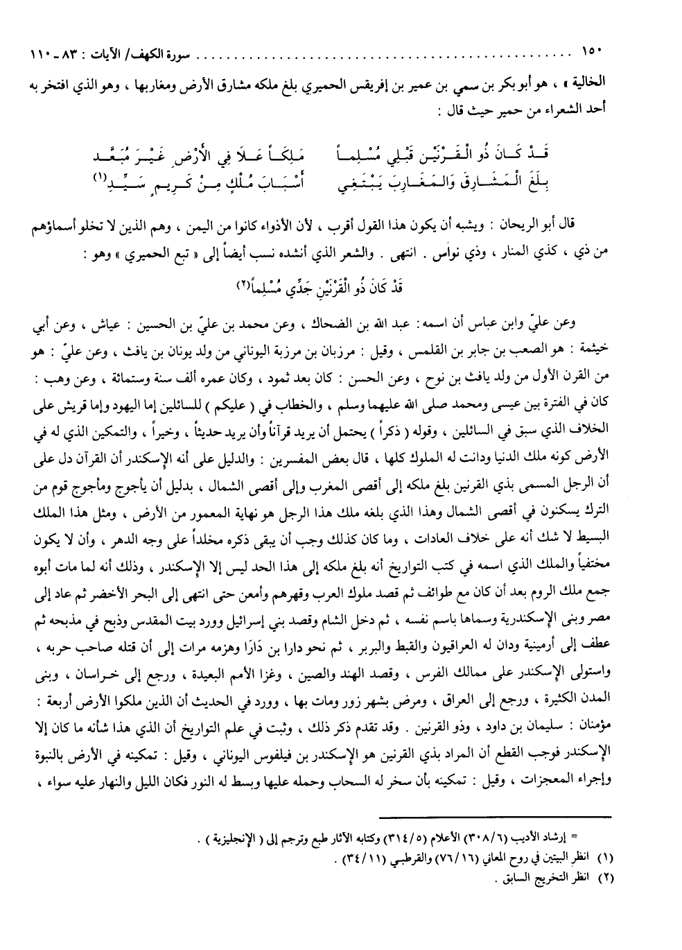 أسباب ملك من كريم سيد قال أبو الريحان : ويشبه أن يكون هذا القول أقرب لأن الأذواء كانوا من اليمن وهم الذين لا تخلوا أسماؤهم من ذي كذي المنار ، وذي يواس انتهى . والشعر الذي أنشده نسب أيضاً إلى تبع الحميري وهو .
