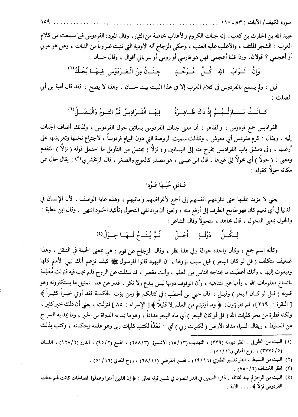 قيل : ولم يسمع بالفردوس في كلام العرب إلاّ في هذا البيت بيت حسان ، وهذا لا يصح فقد قال أمية بن أبي الصلت : كانت منازلهم إذ ذاك ظاهرة