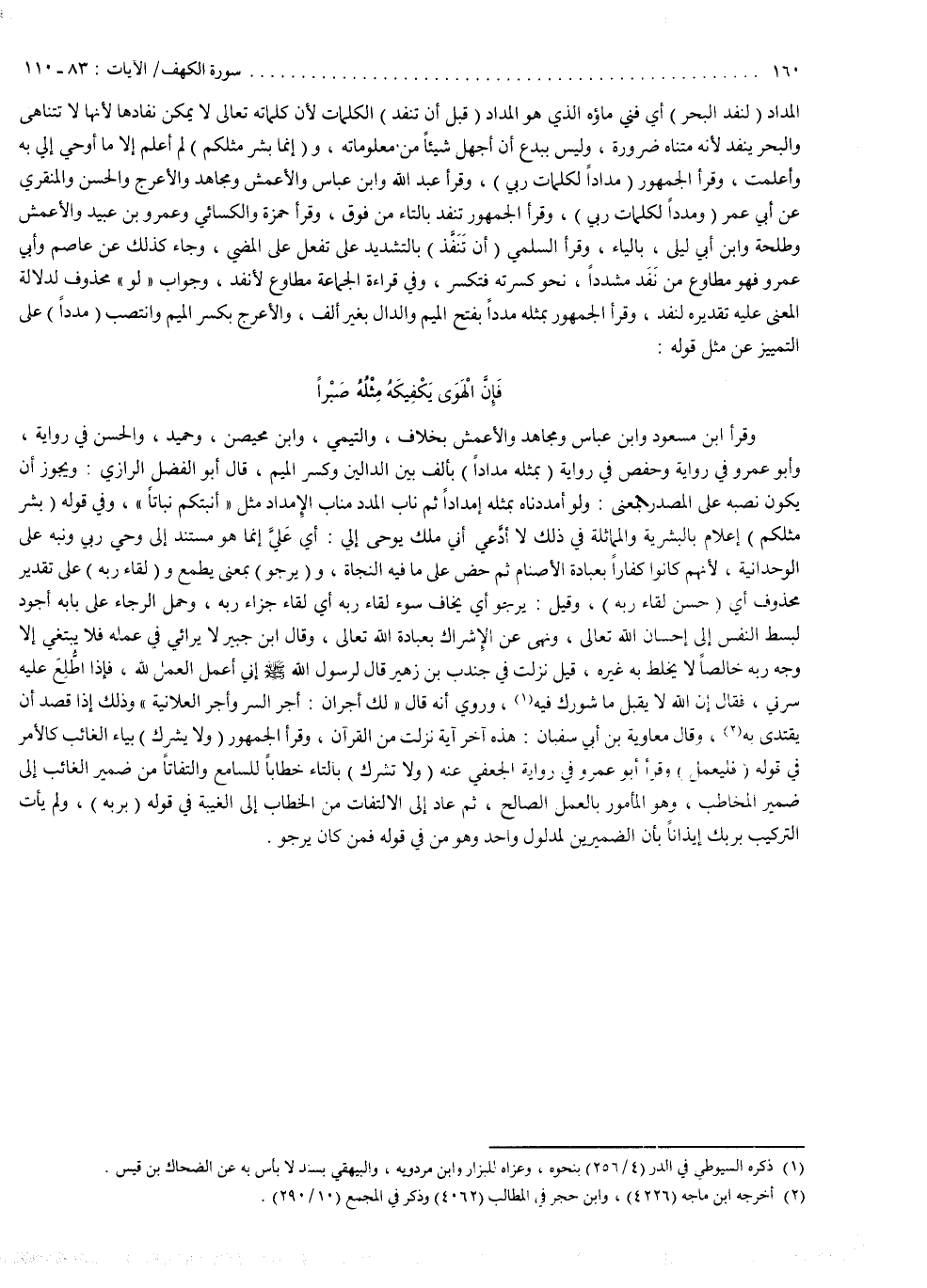 المداد ) لَنَفِدَ الْبَحْرُ ( أي فني ماؤه الذي هو المداد قبل أن تنفد الكلمات لأن كلماته تعالى لا يمكن نفادها لأنها لا تتناهى والبحر ينفد لأنه متناه ضرورة ، وليس ببدع أن أجهل شيئاً من معلوماته