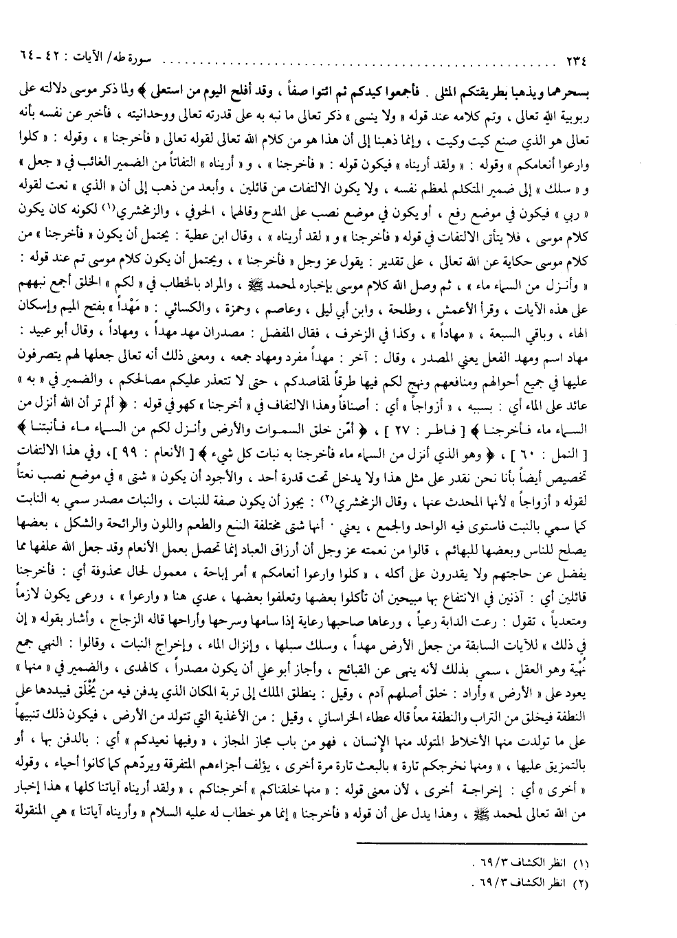 ولما ذكر موسى دلالته على ربوبية الله تعالى وثم كلامه عند قوله ) وَلاَ يَنسَى ( ذكر تعالى ما نبه به على قدرته تعالى ووحدانيته ، فأخبر عن نفسه بأنه تعالى هو الذي صنع كيت وكيت ، وإنما ذهبنا إلى أن هذا هو من كلام الله تعالى لقوله تعالى ) فَأَخْرَجْنَا ( وقوله