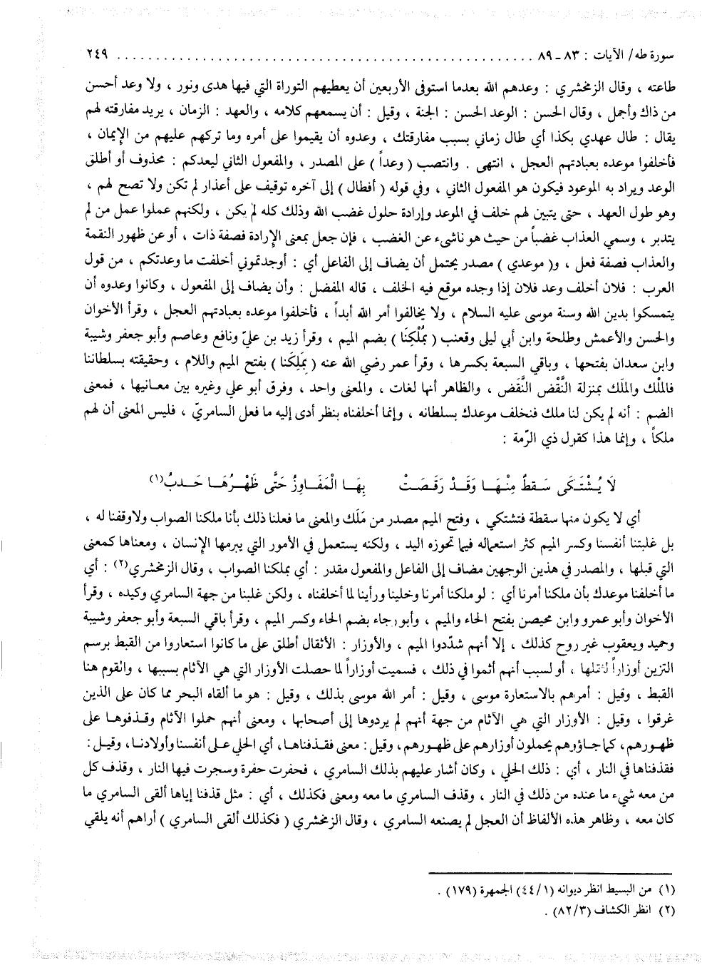 طه : ( 87 ) قالوا ما أخلفنا . . . . .
