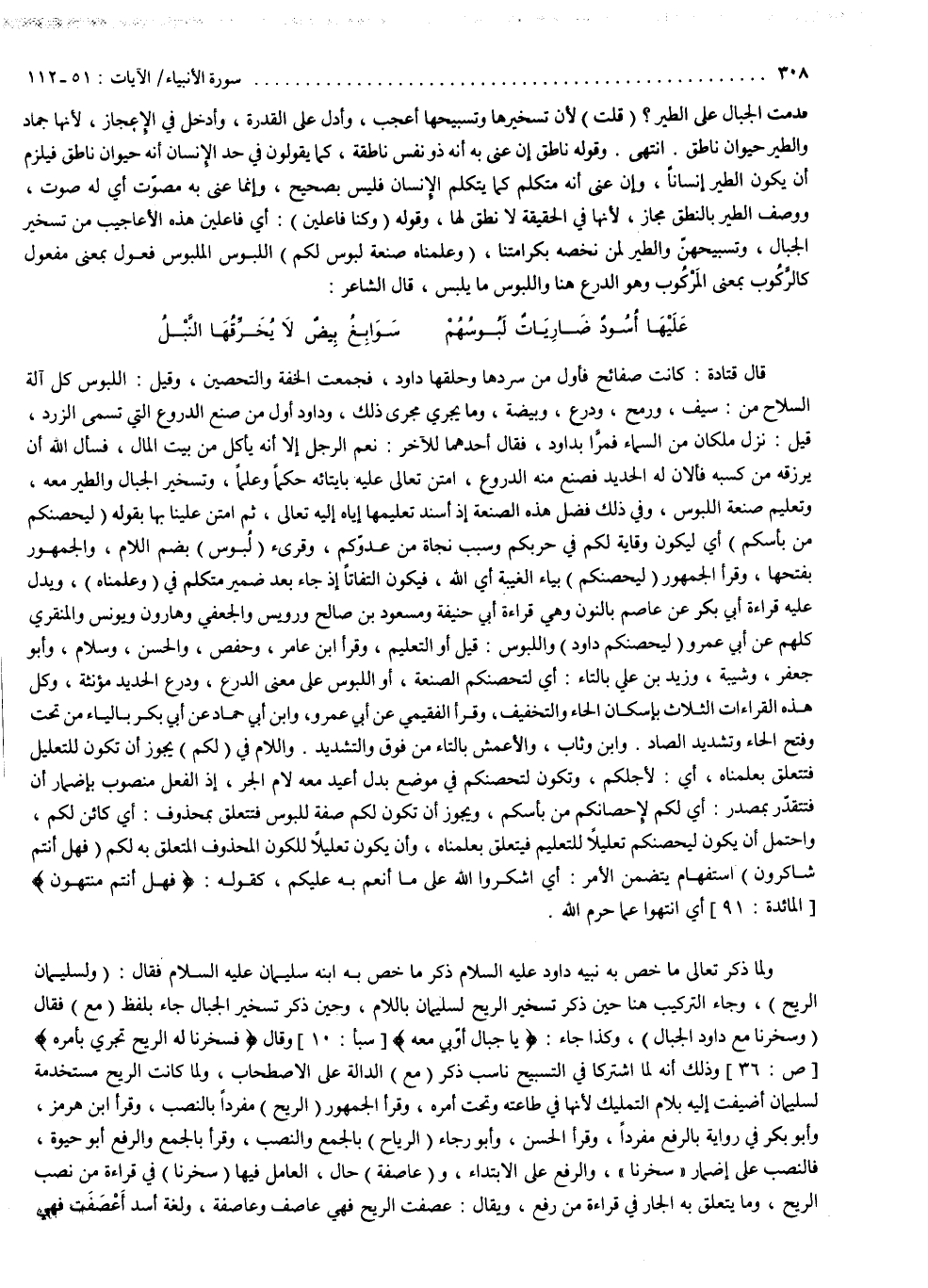 ( وَعَلَّمْنَاهُ صَنْعَةَ لَبُوسٍ لَّكُمْ ( اللبوس الملبوس فعول بمعنى مفعول كالركوب بمعنى المركوب ، وهو الدرع هنا . واللبوس ما يلبس . قال الشاعر : عليها أسود ضاريات لبوسهم