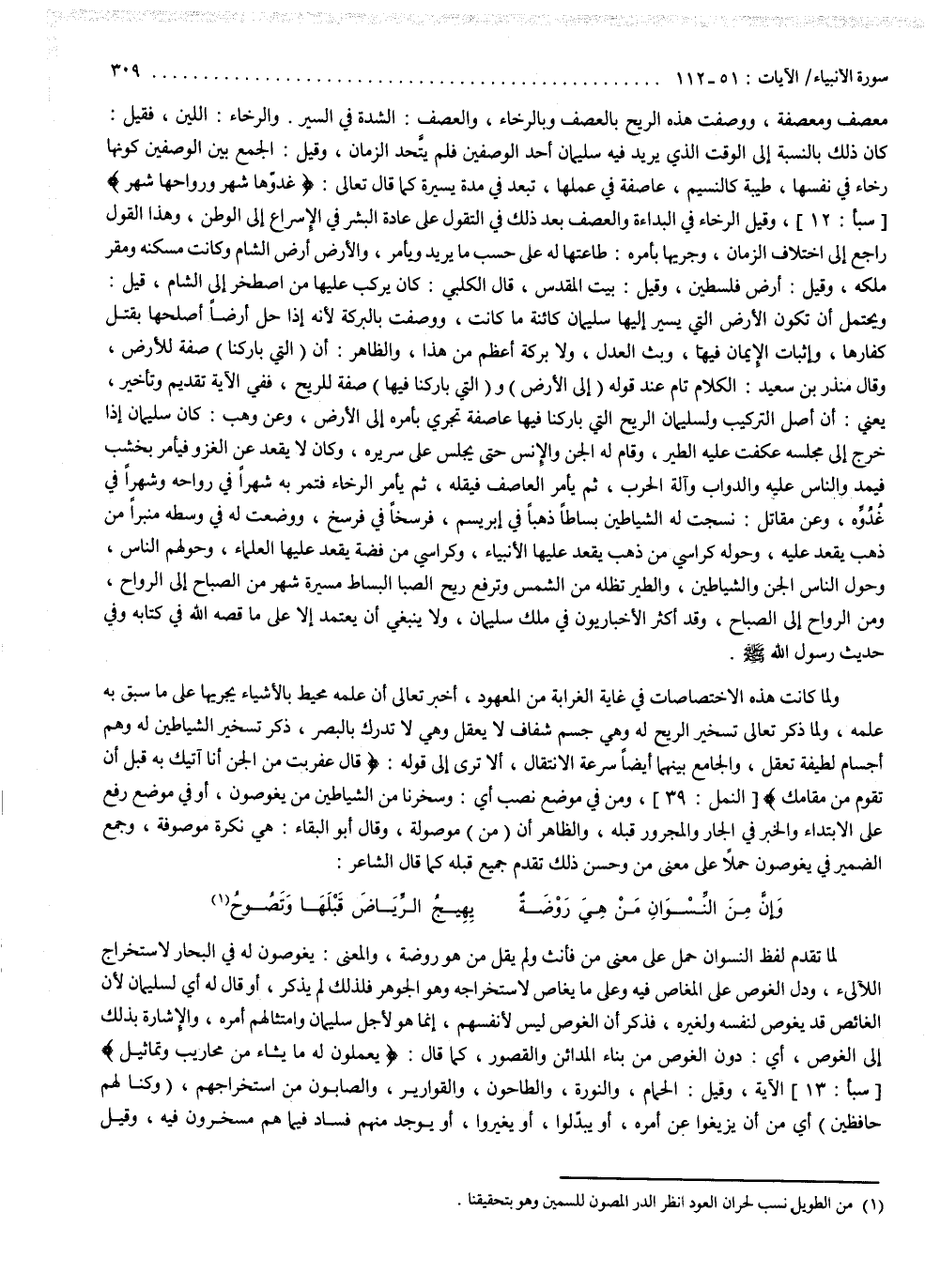 ولما كانت هذه الاختصاصات في غاية الغرابة من المعهود ، أخبر تعالى أن علمه محيط بالأشياء يجريها على ما سبق به علمه ، ولما ذكر تعالى تسخير الريح له وهي جسم شفاف لا يعقل وهي لا تدرك بالبصر ذكر تسخير الشياطين له ، وهم أجسام لطيفة تعقل والجامع بينهما أيضاً سرعة الانتقال ألا ترى إلى قوله ) قَالَ عِفْرِيتٌ مّن الْجِنّ أَنَاْ ءاتِيكَ بِهِ قَبْلَ أَن تَقُومَ مِن مَّقَامِكَ ( ) وَمِنْ ( في موضع نصب أي وسخرنا ) مِنْ الشَّيَاطِينِ مَن يَغُوصُونَ ( أو في موضع رفع على الابتداء ، والخبر في الجار والمجرور قبله . والظاهر أن ) مِنْ ( موصولة . وقال أبو البقاء : هي نكرة موصوفة ، وجمع الضمير في ) يَغُوصُونَ ( حملاً على معنى ) مِنْ ( وحسن ذلك تقدم جمع قبله كما قال الشاعر : وإن من النسوان من هي روضة