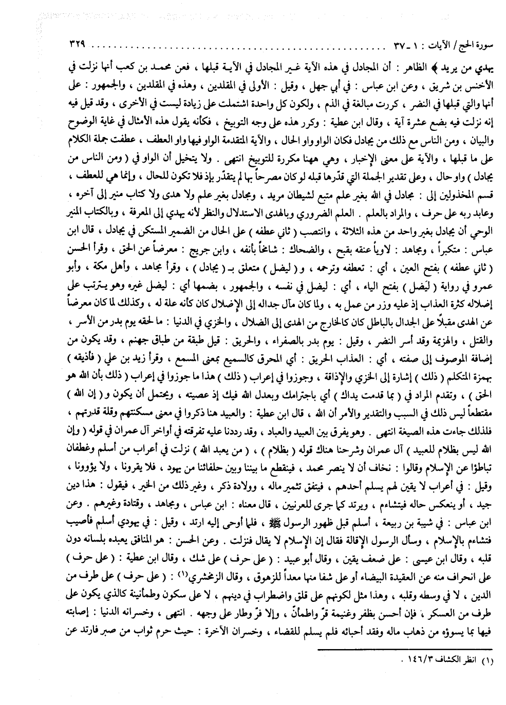 الظاهر أن المجادل في هذه الآية غير المجادل في الآية قبلها ، فعن محمد بن كعب أنها نزلت في الأخنس بن شريق . وعن ابن عباس في أبي جهل . وقيل : الأولى في المقلدين وهذه في المقلدين ، والجمهور على أنها والتي قبلها في النضر كررت مبالغة في الذم ، ولكون كل واحدة اشتملت على زيادة ليست في الأخرى . وقد قيل فيه : نه نزلت فيه بضع عشرة آية . وقال ابن عطية : وكرر هذه على وجه التوبيخ ، فكأنه يقول : هذه الأمثال في غاية الوضوح والبيان ) وَمِنَ النَّاسِ ( مع ذلك ) مَن يُجَادِلُ ( فكان الواو واو الحال ، والآية المتقدمة الواو فيها واو العطف عطفت جملة الكلام على ما قبلها ، والآية على معنى الإخبار وهي ههنا مكررة للتوبيخ انتهى . ولا يتخيل أن الواو في ) وَمِنَ النَّاسِ مَن يُجَادِلُ ( واو حال ، وعلى تقدير الجملة التي قدّرها قبله لو كان مصرحاً بها لم يتقدّر بإذ فلا تكون للحال ، وإنما هي للعطف قسم المخذولين إلى مجادل ) فِى اللَّهِ بِغَيْرِ عِلْمٍ ( متبع لشيطان مريد ، ومجادل ) بِغَيْرِ عِلْمٍ وَلاَ هُدًى وَلاَ كِتَابٍ مُّنِيرٍ ( إلى آخره وعابد ربه على حرف والمراد بالعلم العلم الضروري ، وبالهدى الاستدلال والنظر لأنه يهدي إلى المعرفة ، وبالكتاب المنير الوحي أي ) يُجَادِلُ ( بغير واحد من هذه الثلاثة .