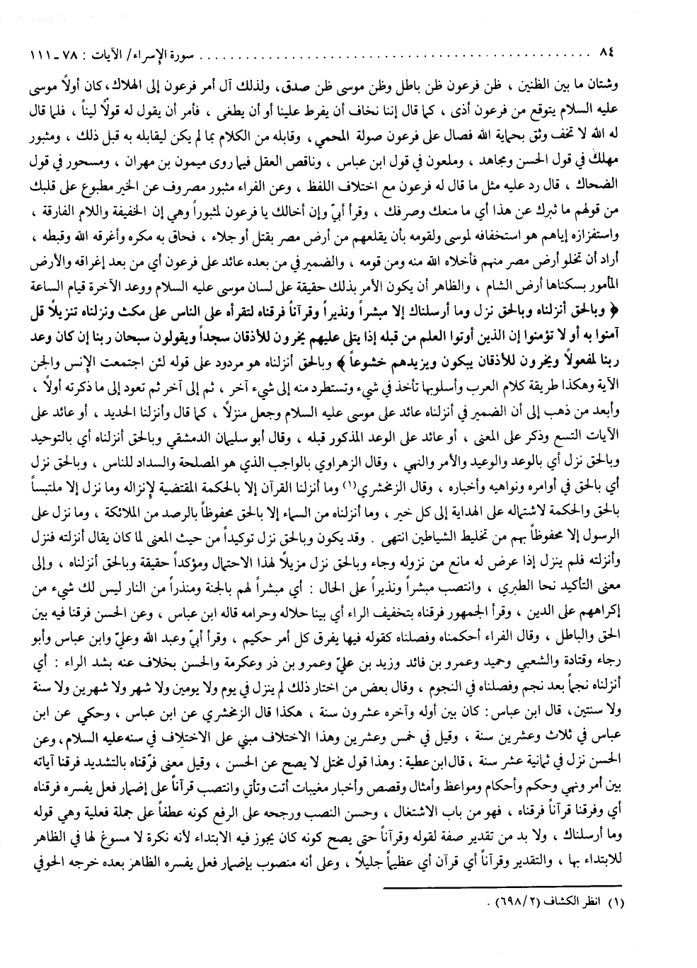 الإسراء : ( 105 ) وبالحق أنزلناه وبالحق . . . . .
