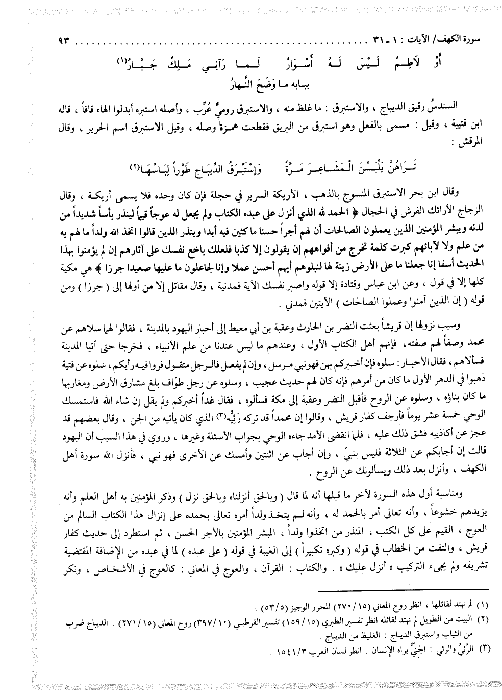 وقال ابن بحر : الإستبراق المنسوج بالذهب . الأريكة السرير في حجلة ، فإن كان وحده فلا يسمى أريكة . وقال الزجاج : الأرائك الفرش في الحجال .