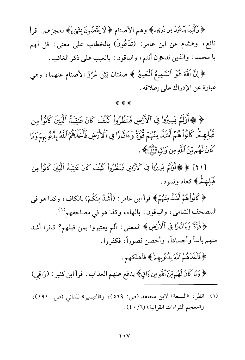 [21] {أَوَلَمْ يَسِيرُوا فِي الْأَرْضِ فَيَنْظُرُوا كَيْفَ كَانَ عَاقِبَةُ الَّذِينَ كَانُوا مِنْ قَبْلِهِمْ} كعاد وثمود.