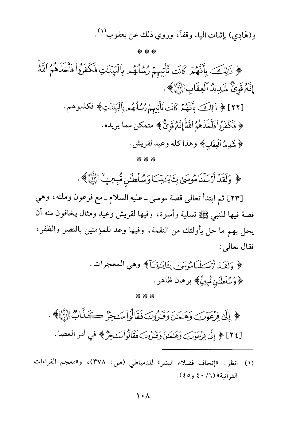 {وَلَقَدْ أَرْسَلْنَا مُوسَى بِآيَاتِنَا وَسُلْطَانٍ مُبِينٍ (23)}.