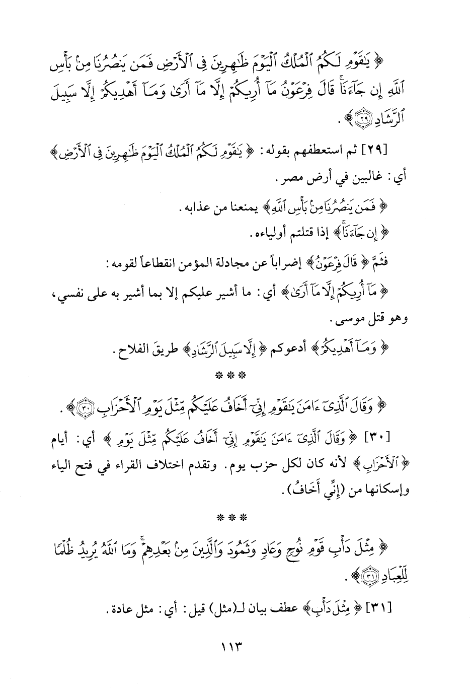 {وَقَالَ الَّذِي آمَنَ يَاقَوْمِ إِنِّي أَخَافُ عَلَيْكُمْ مِثْلَ يَوْمِ الْأَحْزَابِ (30)}.