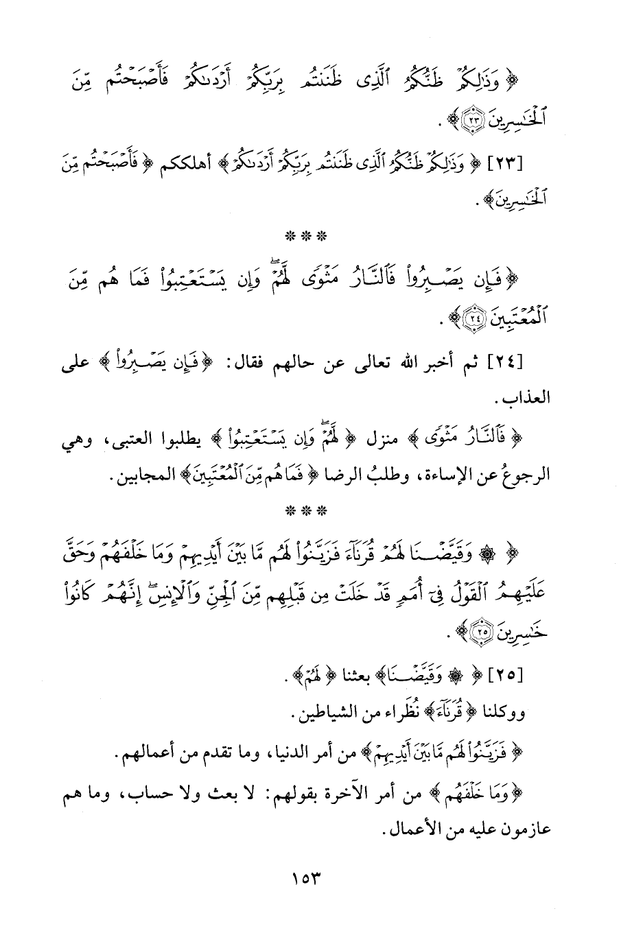 {وَقَيَّضْنَا لَهُمْ قُرَنَاءَ فَزَيَّنُوا لَهُمْ مَا بَيْنَ أَيْدِيهِمْ وَمَا خَلْفَهُمْ وَحَقَّ عَلَيْهِمُ الْقَوْلُ فِي أُمَمٍ قَدْ خَلَتْ مِنْ قَبْلِهِمْ مِنَ الْجِنِّ وَالْإِنْسِ إِنَّهُمْ كَانُوا خَاسِرِينَ (25)}.