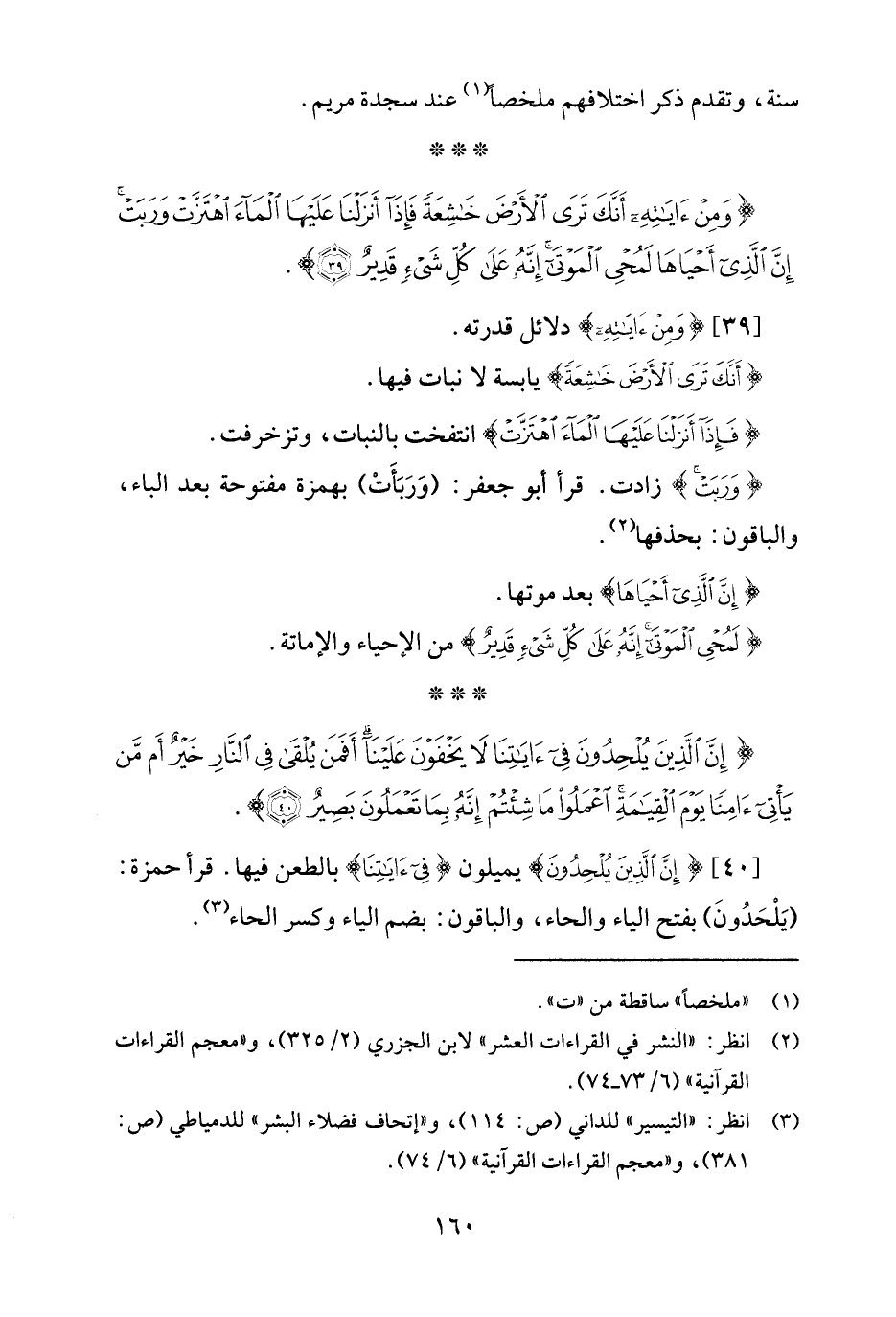 [40] {إِنَّ الَّذِينَ يُلْحِدُونَ} يميلون {فِي آيَاتِنَا} بالطعن فيها. قرأ حمزة: (يَلْحَدُونَ) بفتح الياء والحاء، والباقون: بضم الياء وكسر الحاء (¬3).