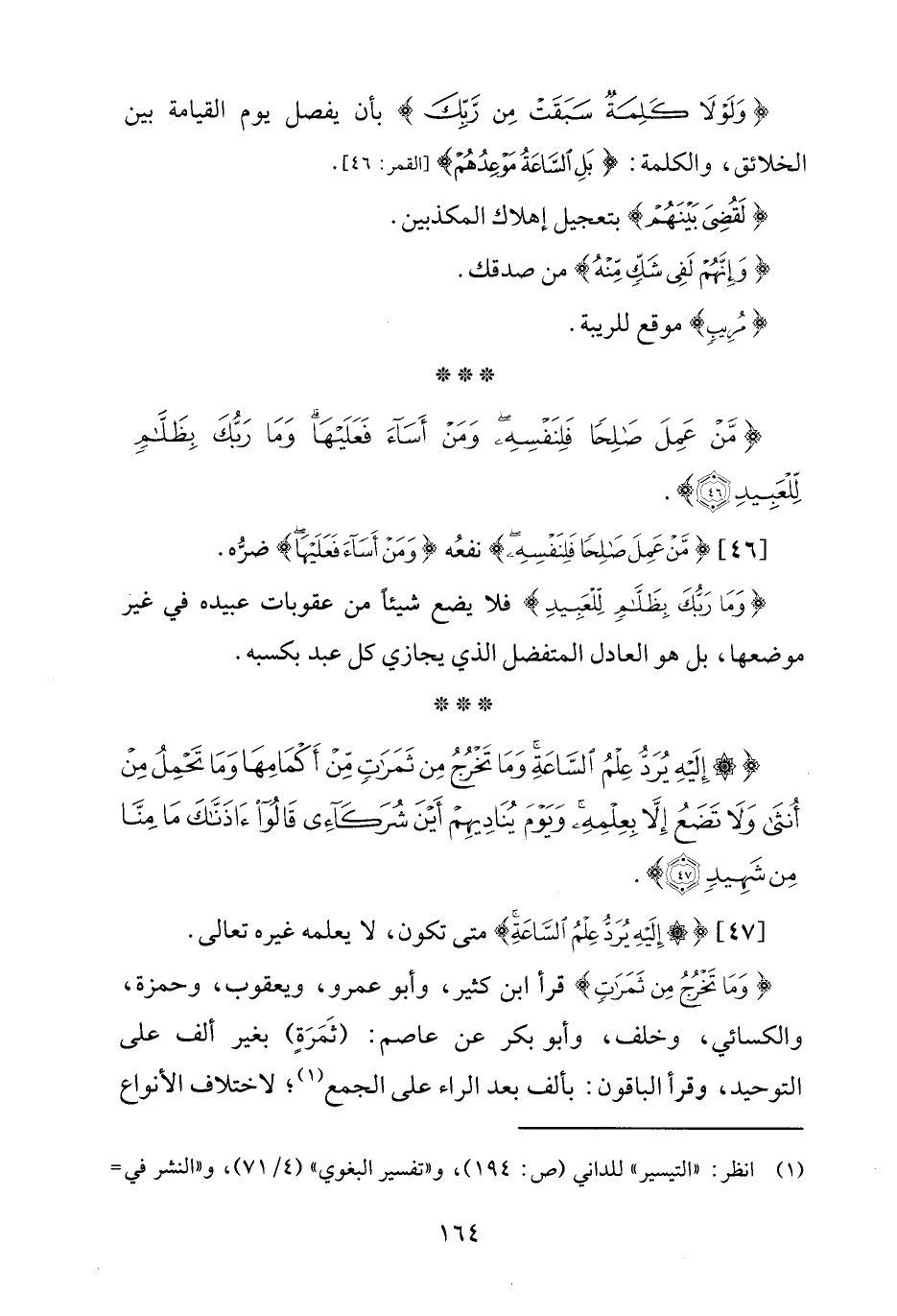 {مَنْ عَمِلَ صَالِحًا فَلِنَفْسِهِ وَمَنْ أَسَاءَ فَعَلَيْهَا وَمَا رَبُّكَ بِظَلَّامٍ لِلْعَبِيدِ (46)}.