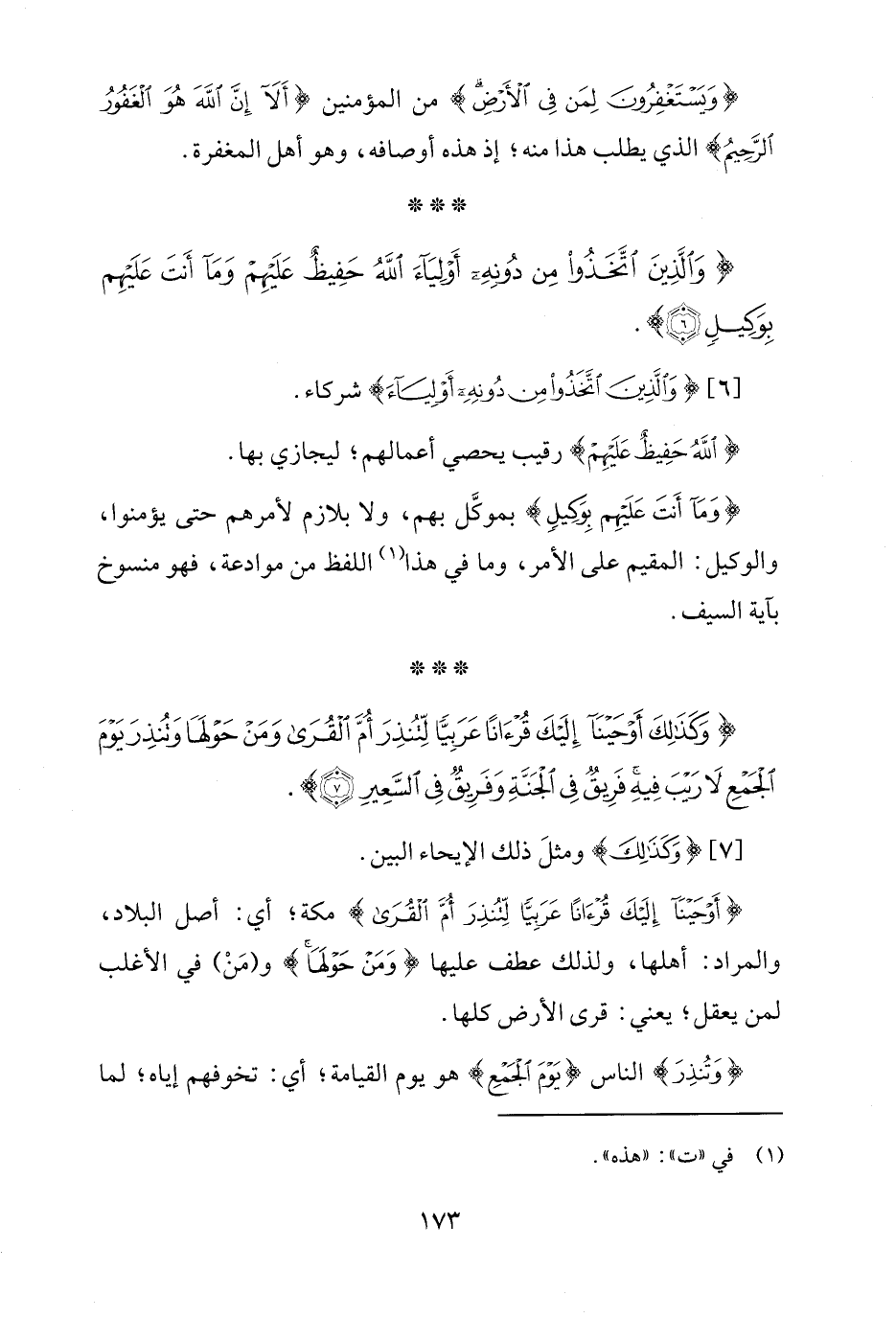 {وَكَذَلِكَ أَوْحَيْنَا إِلَيْكَ قُرْآنًا عَرَبِيًّا لِتُنْذِرَ أُمَّ الْقُرَى وَمَنْ حَوْلَهَا وَتُنْذِرَ يَوْمَ الْجَمْعِ لَا رَيْبَ فِيهِ فَرِيقٌ فِي الْجَنَّةِ وَفَرِيقٌ فِي السَّعِيرِ (7)}.