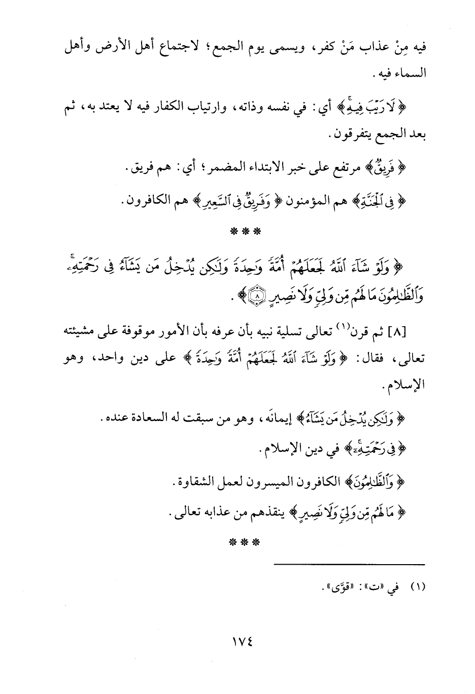 {وَلَوْ شَاءَ اللَّهُ لَجَعَلَهُمْ أُمَّةً وَاحِدَةً وَلَكِنْ يُدْخِلُ مَنْ يَشَاءُ فِي رَحْمَتِهِ وَالظَّالِمُونَ مَا لَهُمْ مِنْ وَلِيٍّ وَلَا نَصِيرٍ (8)}.