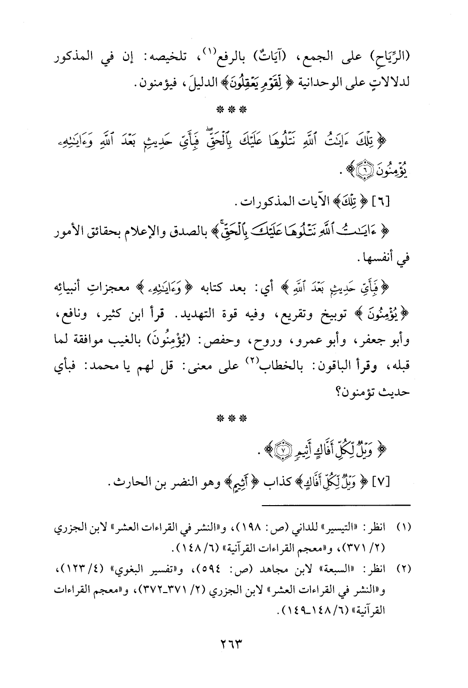 {تِلْكَ آيَاتُ اللَّهِ نَتْلُوهَا عَلَيْكَ بِالْحَقِّ فَبِأَيِّ حَدِيثٍ بَعْدَ اللَّهِ وَآيَاتِهِ يُؤْمِنُونَ (6)}.