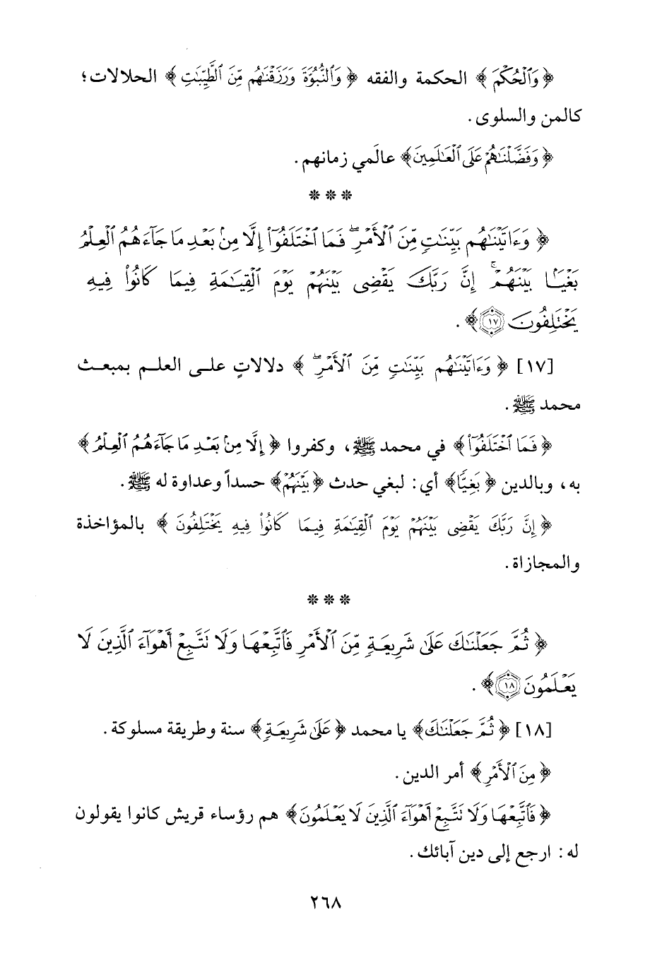 {ثُمَّ جَعَلْنَاكَ عَلَى شَرِيعَةٍ مِنَ الْأَمْرِ فَاتَّبِعْهَا وَلَا تَتَّبِعْ أَهْوَاءَ الَّذِينَ لَا يَعْلَمُونَ (18)}.