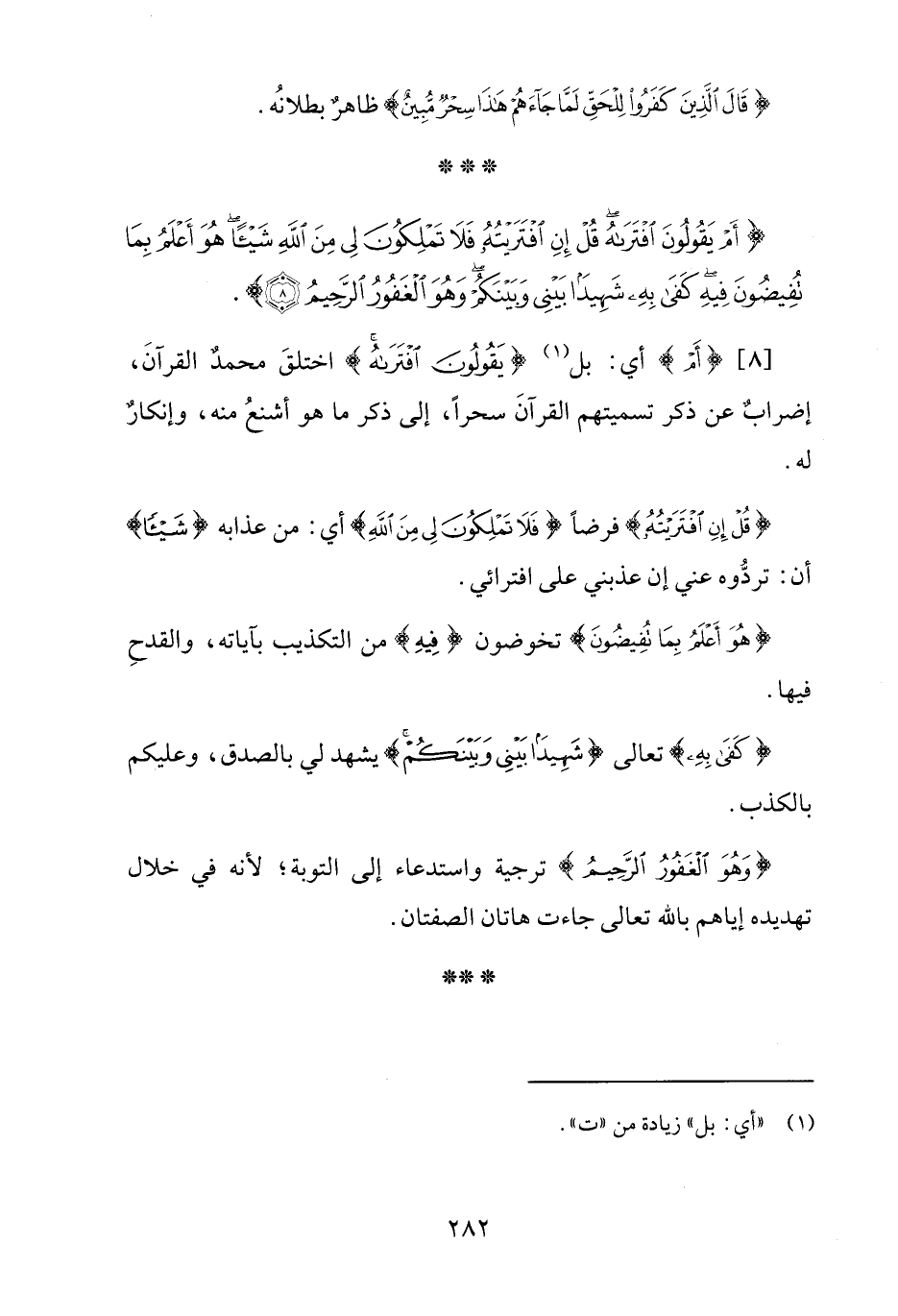[8] {أَمْ} أي: بل (¬1) {يَقُولُونَ افْتَرَاهُ} اختلقَ محمدٌ القرآن، إضرابٌ عن ذكر تسميتهم القرآنَ سحرًا، إلى ذكر ما هو أشنعُ منه، وإنكارٌ له.
