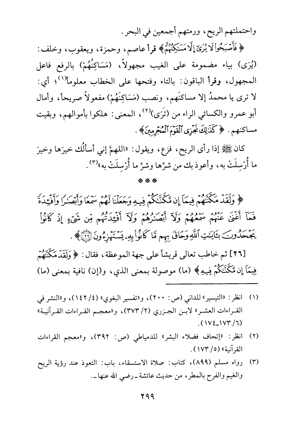 [26] ثمّ خاطب تعالى قريشًا على جهة الموعظة، فقال: {وَلَقَدْ مَكَّنَّاهُمْ فِيمَا إِنْ مَكَّنَّاكُمْ فِيهِ} (ما) موصولة بمعنى الّذي، و (إن) نافية بمعنى (ما)