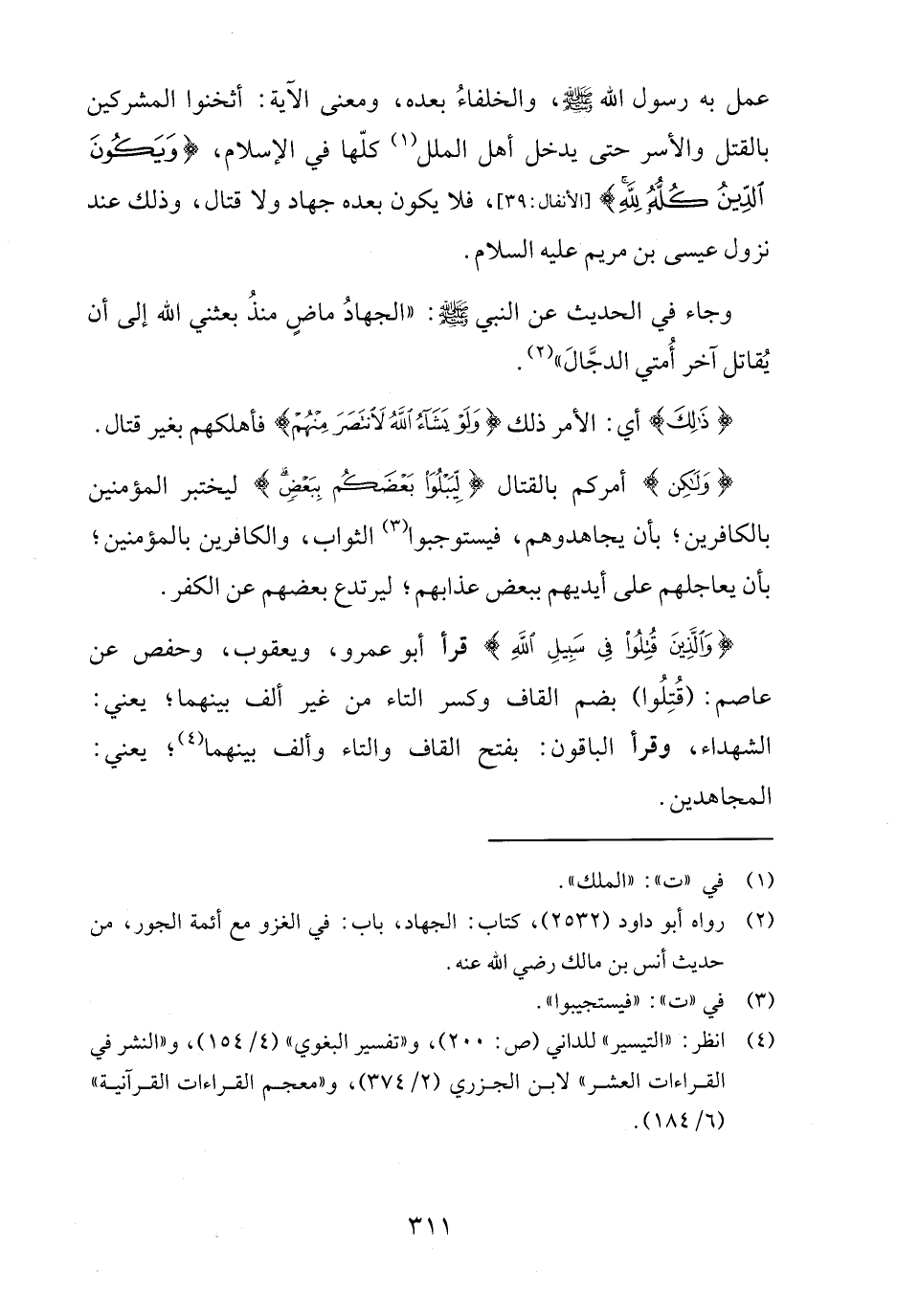 (¬4) انظر: "التيسير" للداني (ص: 200)، و"تفسير البغوي" (4/ 154)، و"النشر في القراءات العشر" لابن الجزري (2/ 374)، و"معجم القراءات القرآنية" (6/ 184).