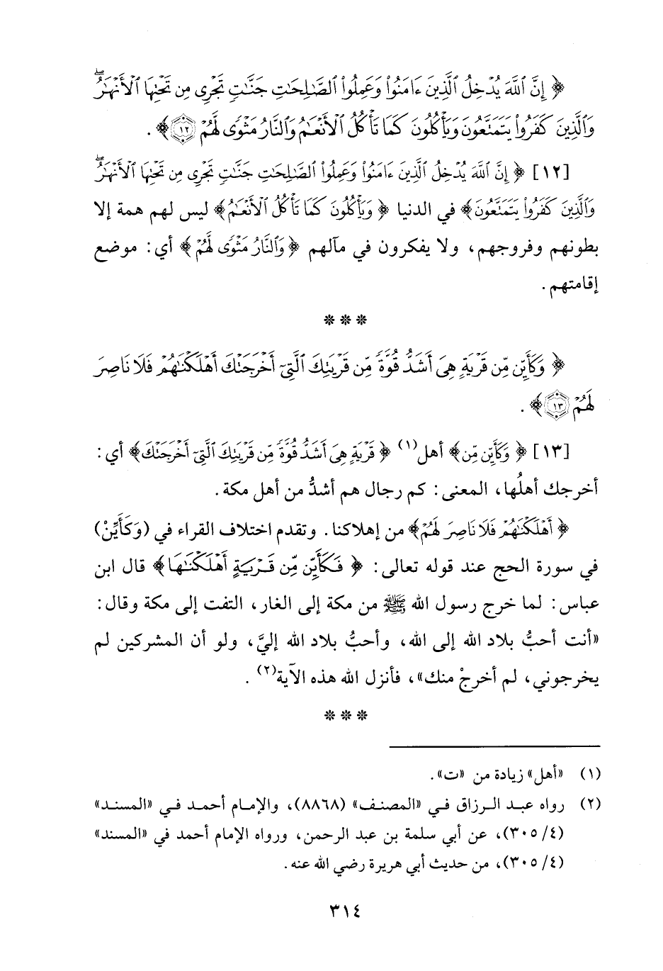 {وَكَأَيِّنْ مِنْ قَرْيَةٍ هِيَ أَشَدُّ قُوَّةً مِنْ قَرْيَتِكَ الَّتِي أَخْرَجَتْكَ أَهْلَكْنَاهُمْ فَلَا نَاصِرَ لَهُمْ (13)}.