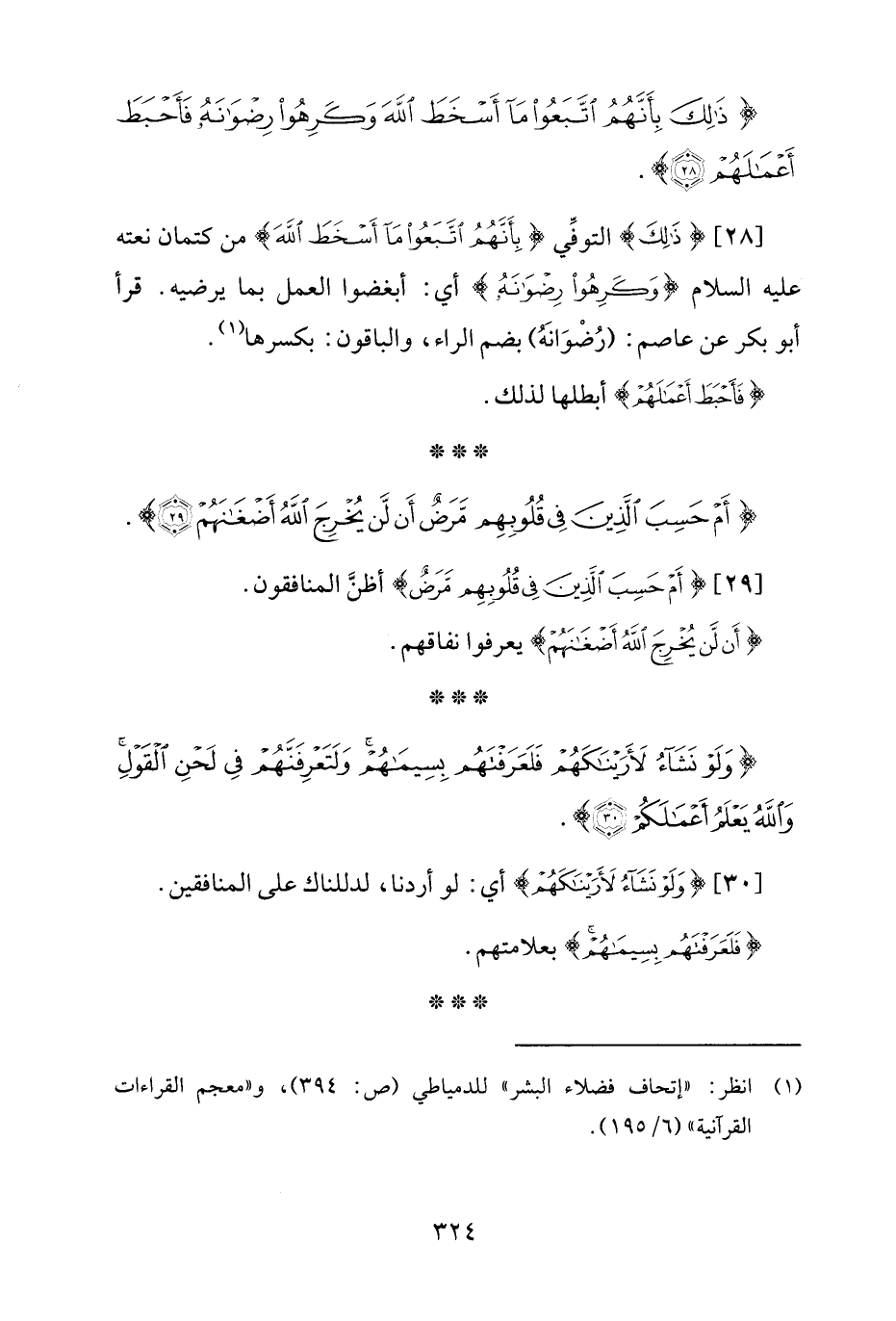 [28] {ذَلِكَ} التوفِّي {بِأَنَّهُمُ اتَّبَعُوا مَا أَسْخَطَ اللَّهَ} من كتمان نعته -عليه السّلام- {وَكَرِهُوا رِضْوَانَهُ} أي: أبغضوا العمل بما يرضيه. قرأ أبو بكر عن عاصم: (رُضْوَانَهُ) بضم الراء، والباقون: بكسرها (¬1).