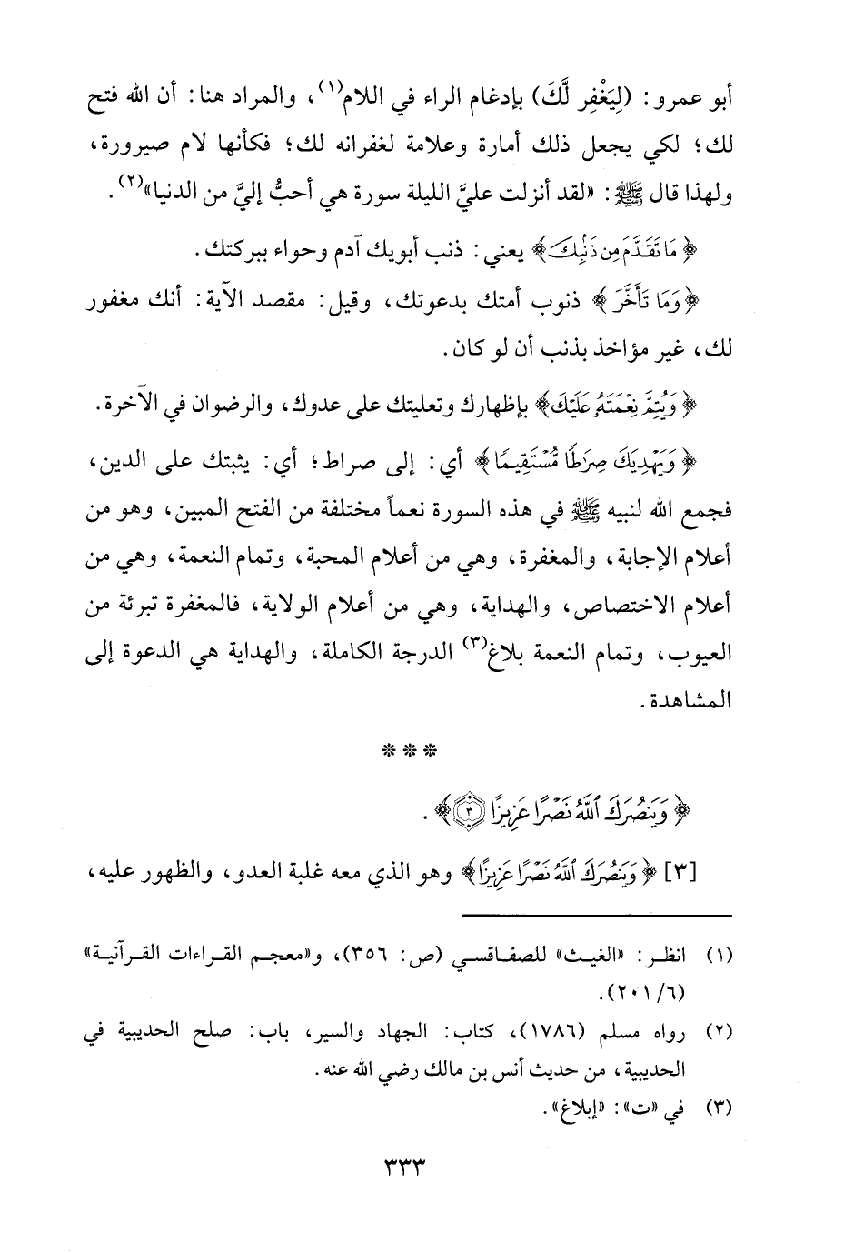 [3] {وَيَنْصُرَكَ اللَّهُ نَصْرًا عَزِيزًا} وهو الّذي معه غلبة العدو، والظهور عليه،