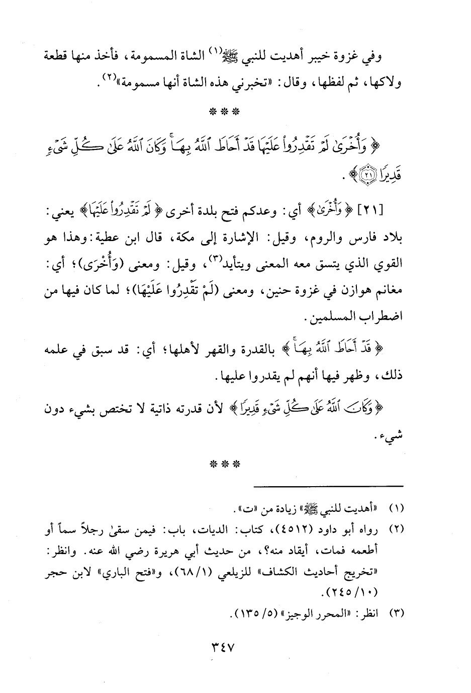 {وَأُخْرَى لَمْ تَقْدِرُوا عَلَيْهَا قَدْ أَحَاطَ اللَّهُ بِهَا وَكَانَ اللَّهُ عَلَى كُلِّ شَيْءٍ قَدِيرًا (21)}.