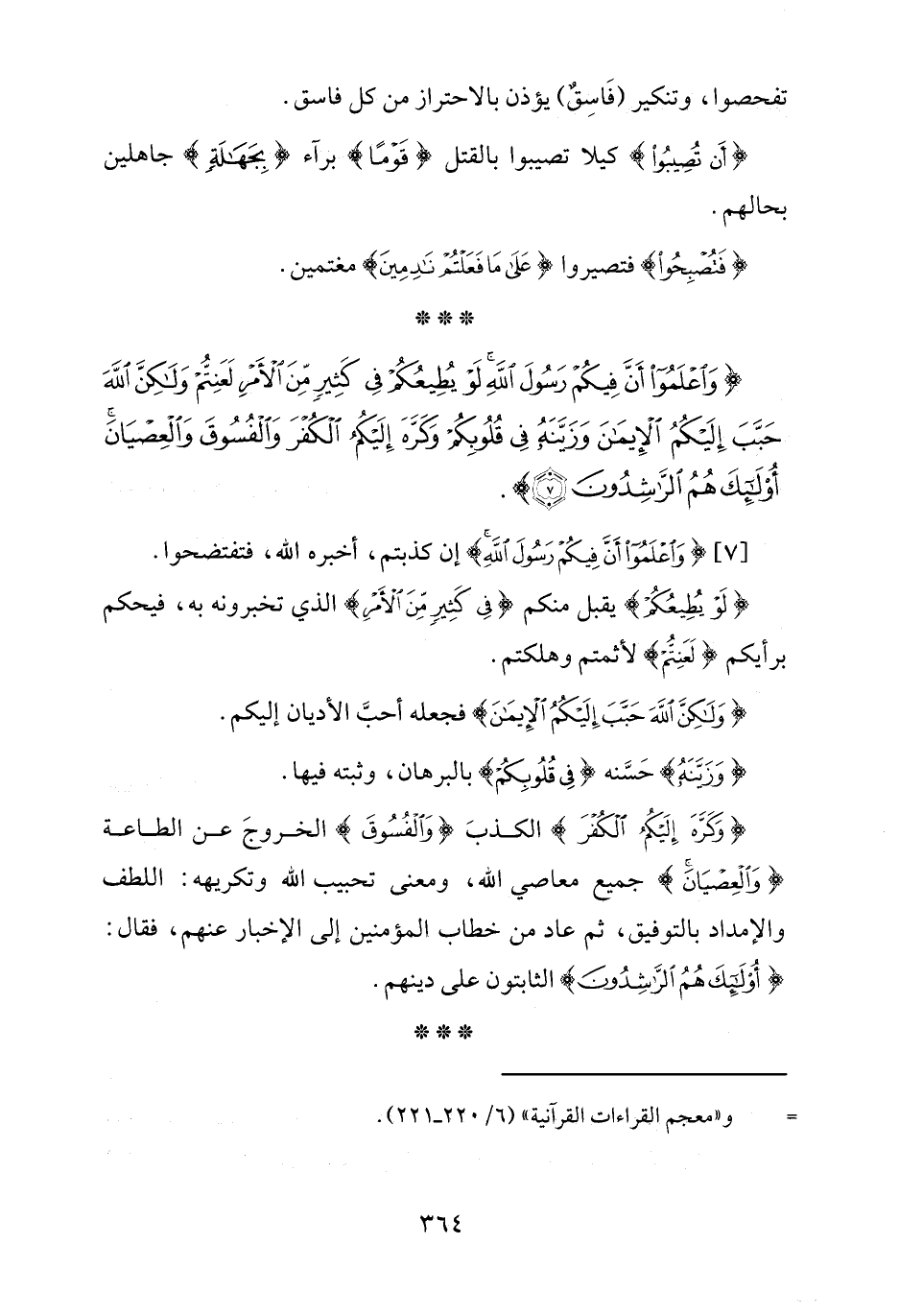 {وَاعْلَمُوا أَنَّ فِيكُمْ رَسُولَ اللَّهِ لَوْ يُطِيعُكُمْ فِي كَثِيرٍ مِنَ الْأَمْرِ لَعَنِتُّمْ وَلَكِنَّ اللَّهَ حَبَّبَ إِلَيْكُمُ الْإِيمَانَ وَزَيَّنَهُ فِي قُلُوبِكُمْ وَكَرَّهَ إِلَيْكُمُ الْكُفْرَ وَالْفُسُوقَ وَالْعِصْيَانَ أُولَئِكَ هُمُ الرَّاشِدُونَ (7)}.