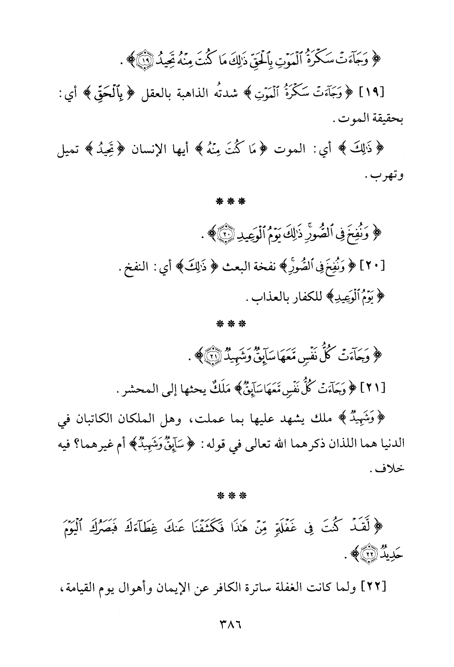 [21] {وَجَاءَتْ كُلُّ نَفْسٍ مَعَهَا سَائِقٌ} مَلَكٌ يحثها إلى المحشر.