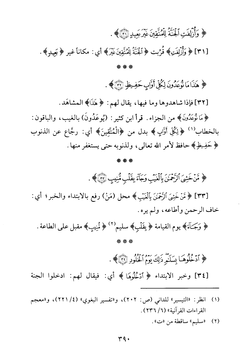 [33] {مَنْ خَشِيَ الرَّحْمَنَ بِالْغَيْبِ} محل (مَنْ) رفع بالابتداء والخبر؛ أي: خاف الرحمن وأطاعه، ولم يره.