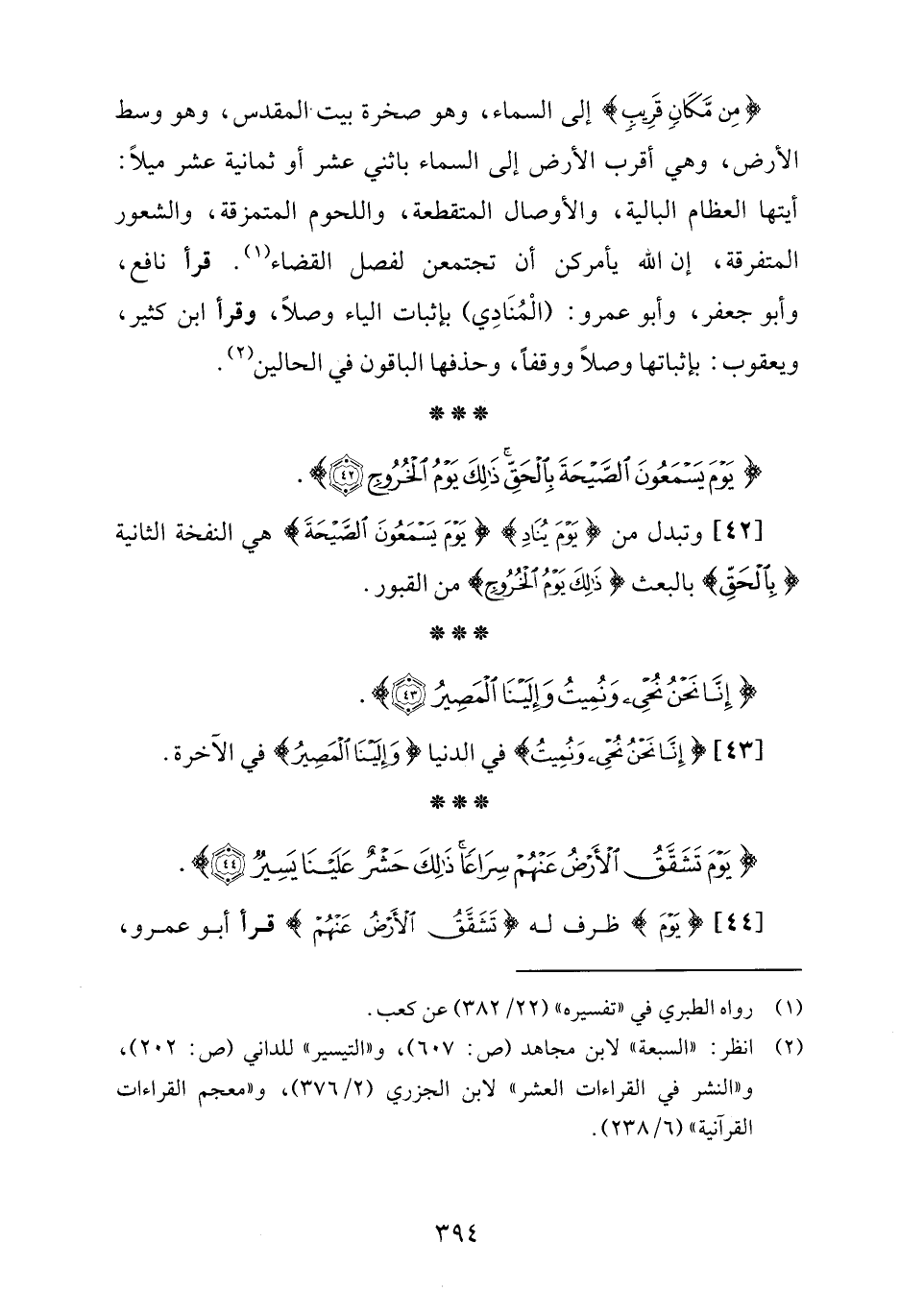 [44] {يَوْمَ} ظرف له {تَشَقَّقُ الْأَرْضُ عَنْهُمْ} قرأ أبو عمرو،