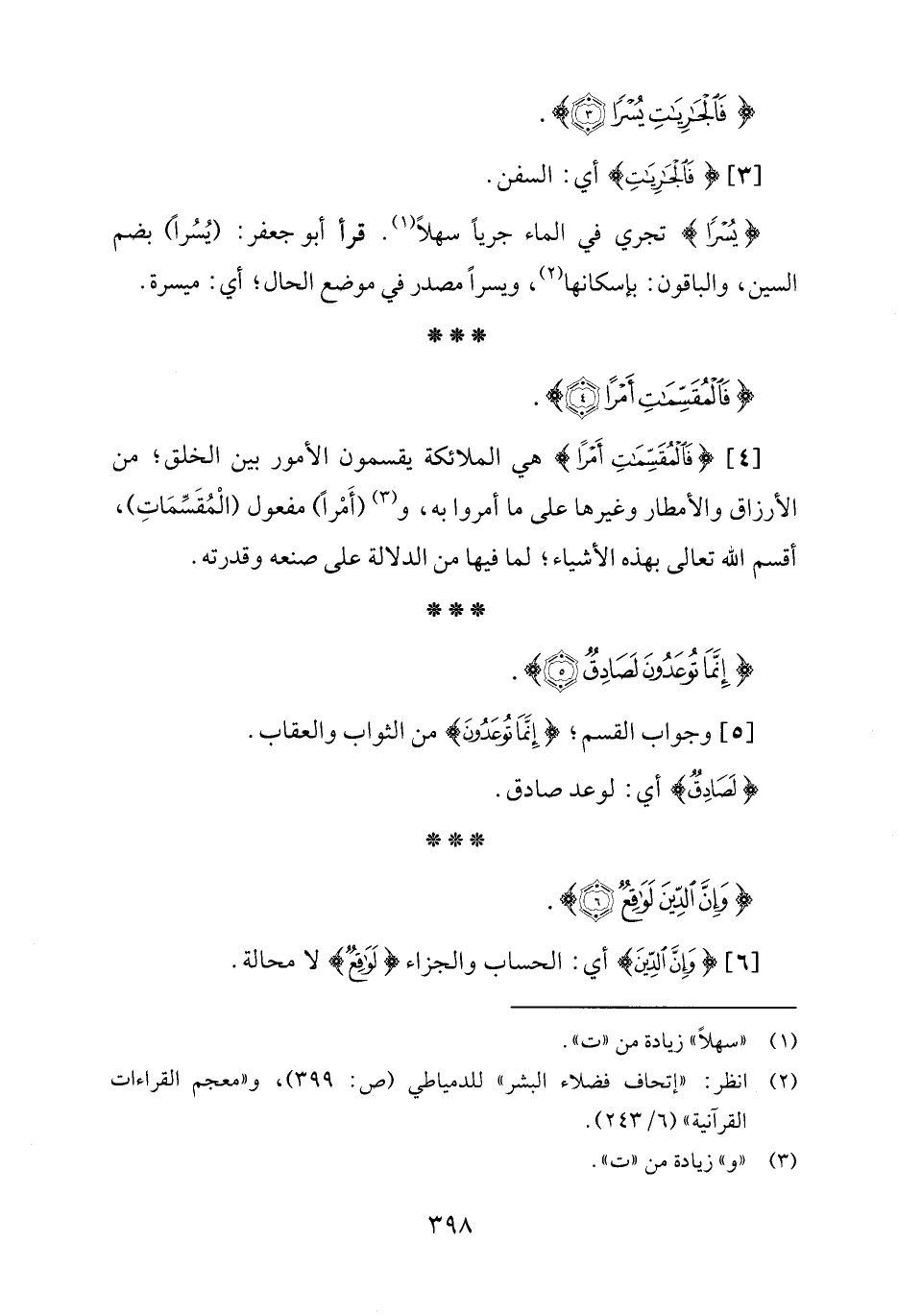 [3] {فَالْجَارِيَاتِ} أي: السفن.