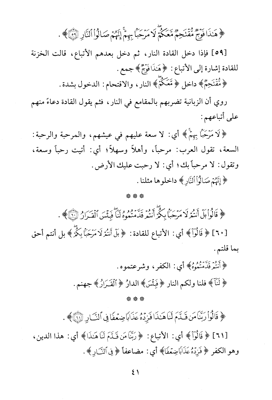 {قَالُوا بَلْ أَنْتُمْ لَا مَرْحَبًا بِكُمْ أَنْتُمْ قَدَّمْتُمُوهُ لَنَا فَبِئْسَ الْقَرَارُ (60)}.