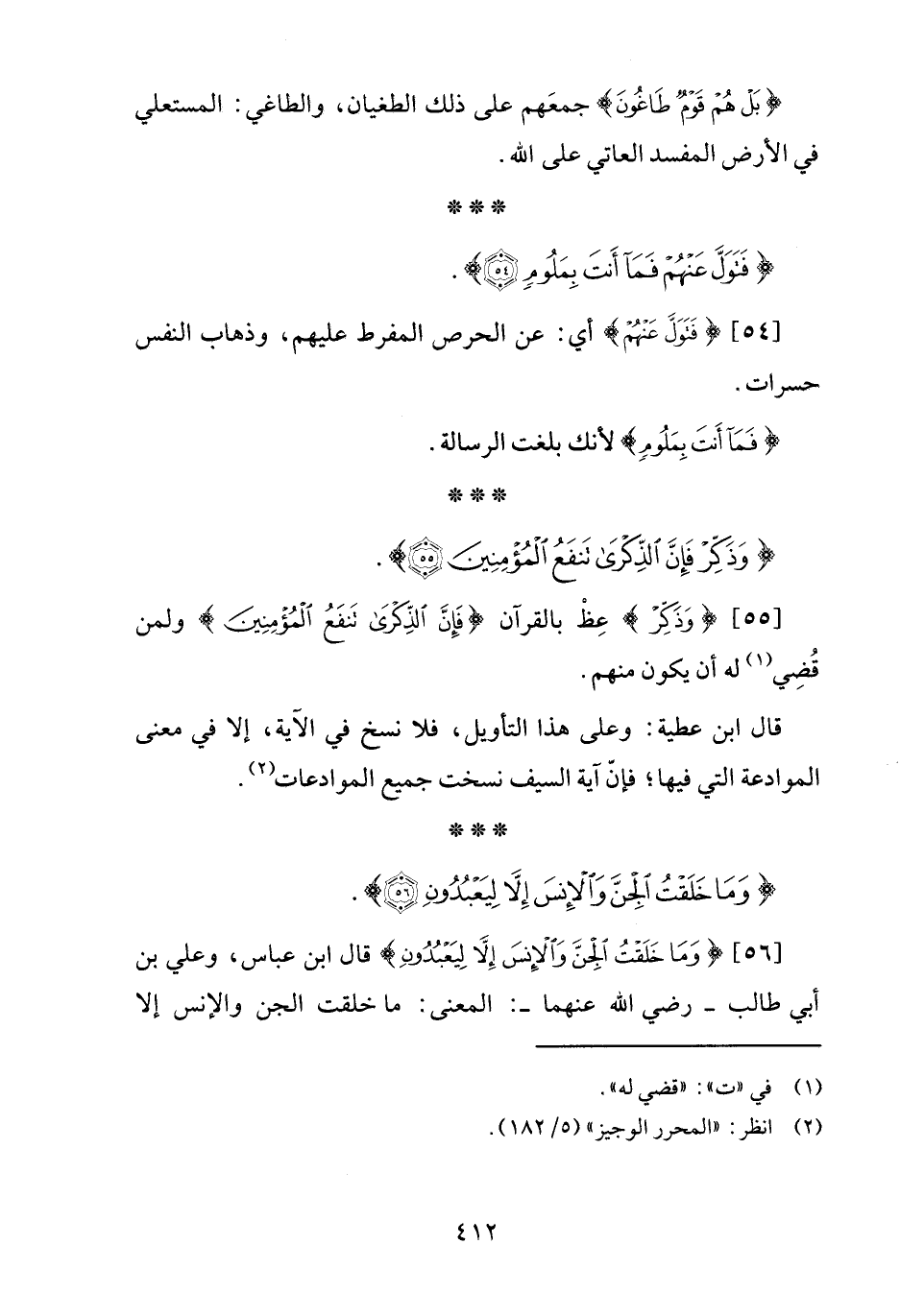 {فَتَوَلَّ عَنْهُمْ فَمَا أَنْتَ بِمَلُومٍ (54)}.