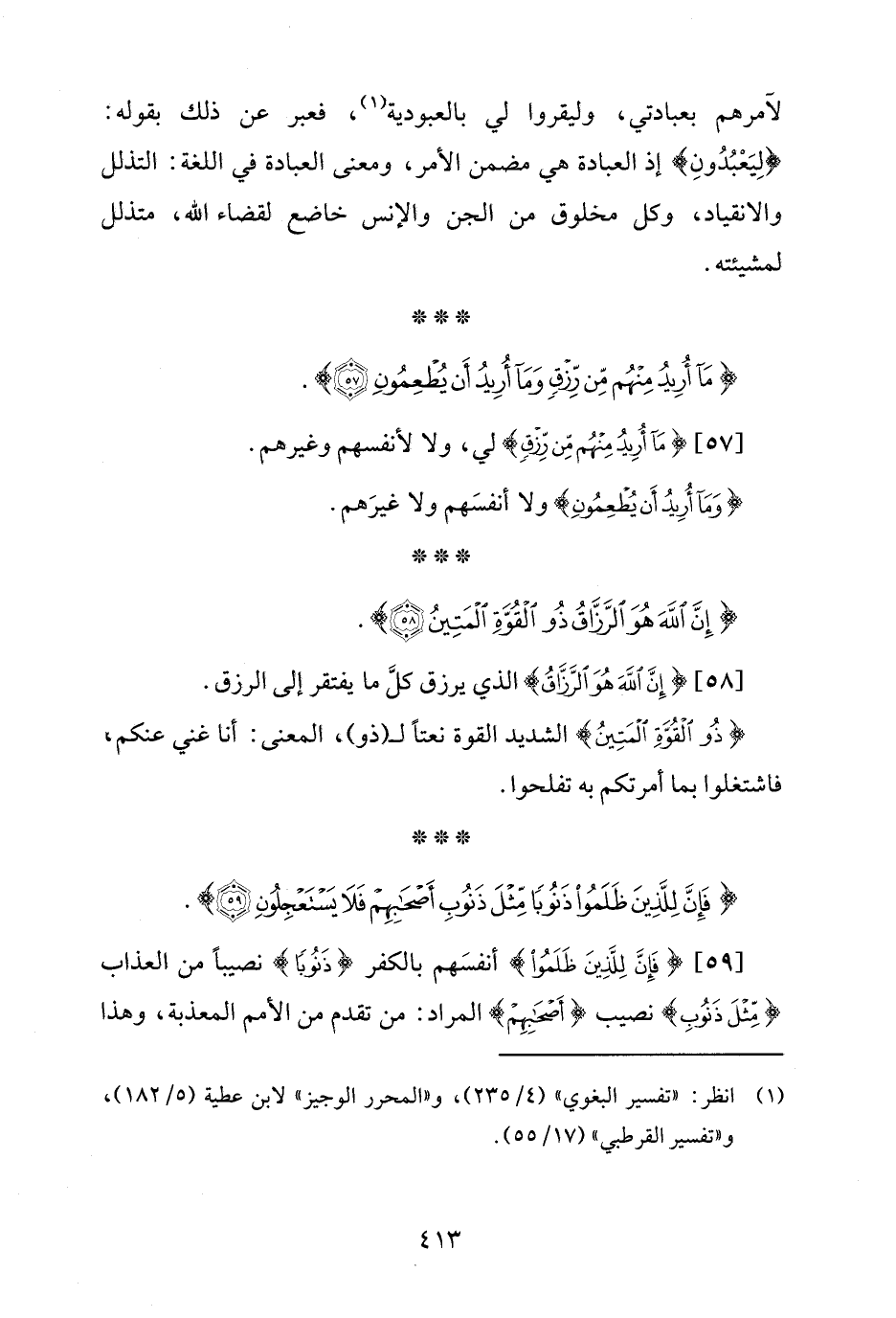 {مَا أُرِيدُ مِنْهُمْ مِنْ رِزْقٍ وَمَا أُرِيدُ أَنْ يُطْعِمُونِ (57)}.