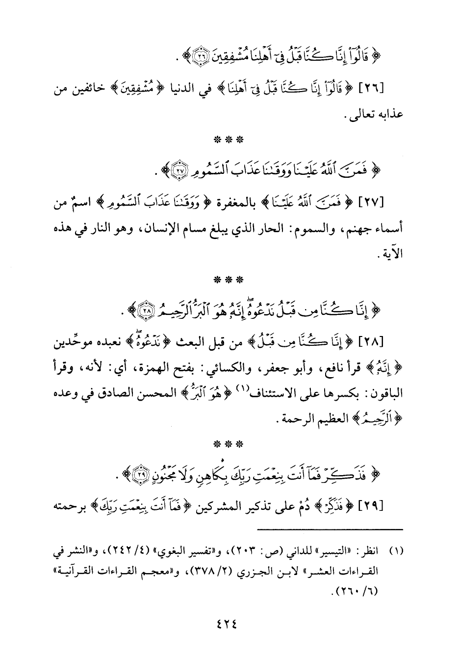 [28] {إِنَّا كُنَّا مِنْ قَبْلُ} من قبل البعث {نَدْعُوهُ} نعبده موحِّدين {إِنَّهُ} قرأ نافع، وأبو جعفر، والكسائي: بفتح الهمزة، أي: لأنه، وقرأ الباقون: بكسرها على الاستئناف (¬1) {هُوَ الْبَرُّ} المحسن الصادق في وعده {الرَّحِيمُ} العظيم الرحمة.