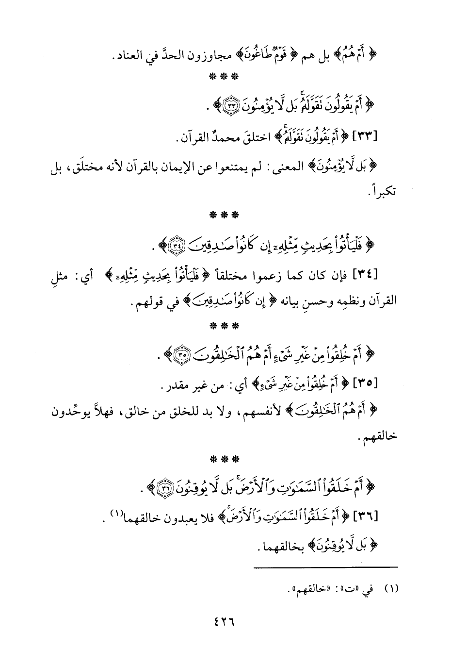 [33] {أَمْ يَقُولُونَ تَقَوَّلَهُ} اختلقَ محمدٌ القرآن.