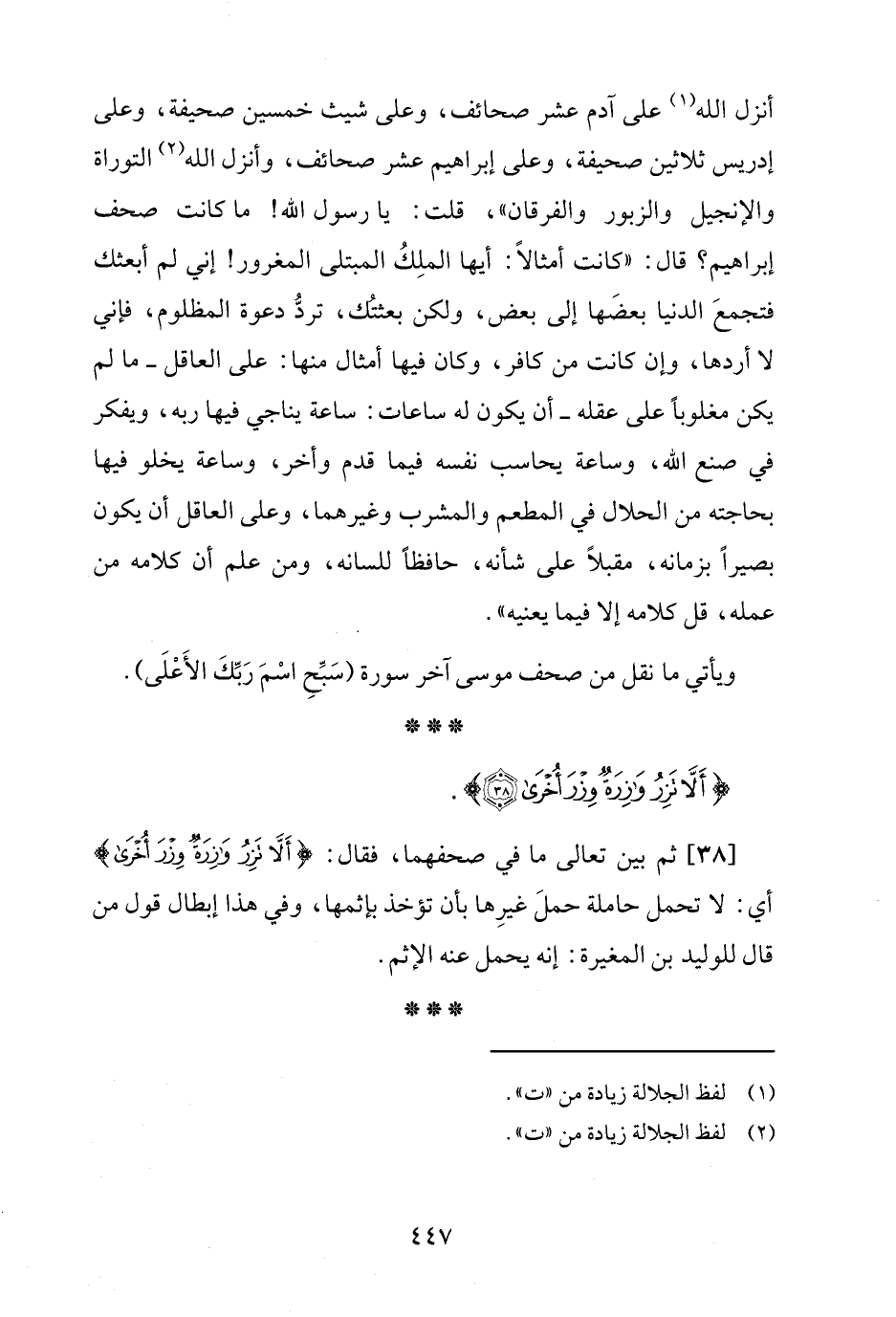 {أَلَّا تَزِرُ وَازِرَةٌ وِزْرَ أُخْرَى (38)}.