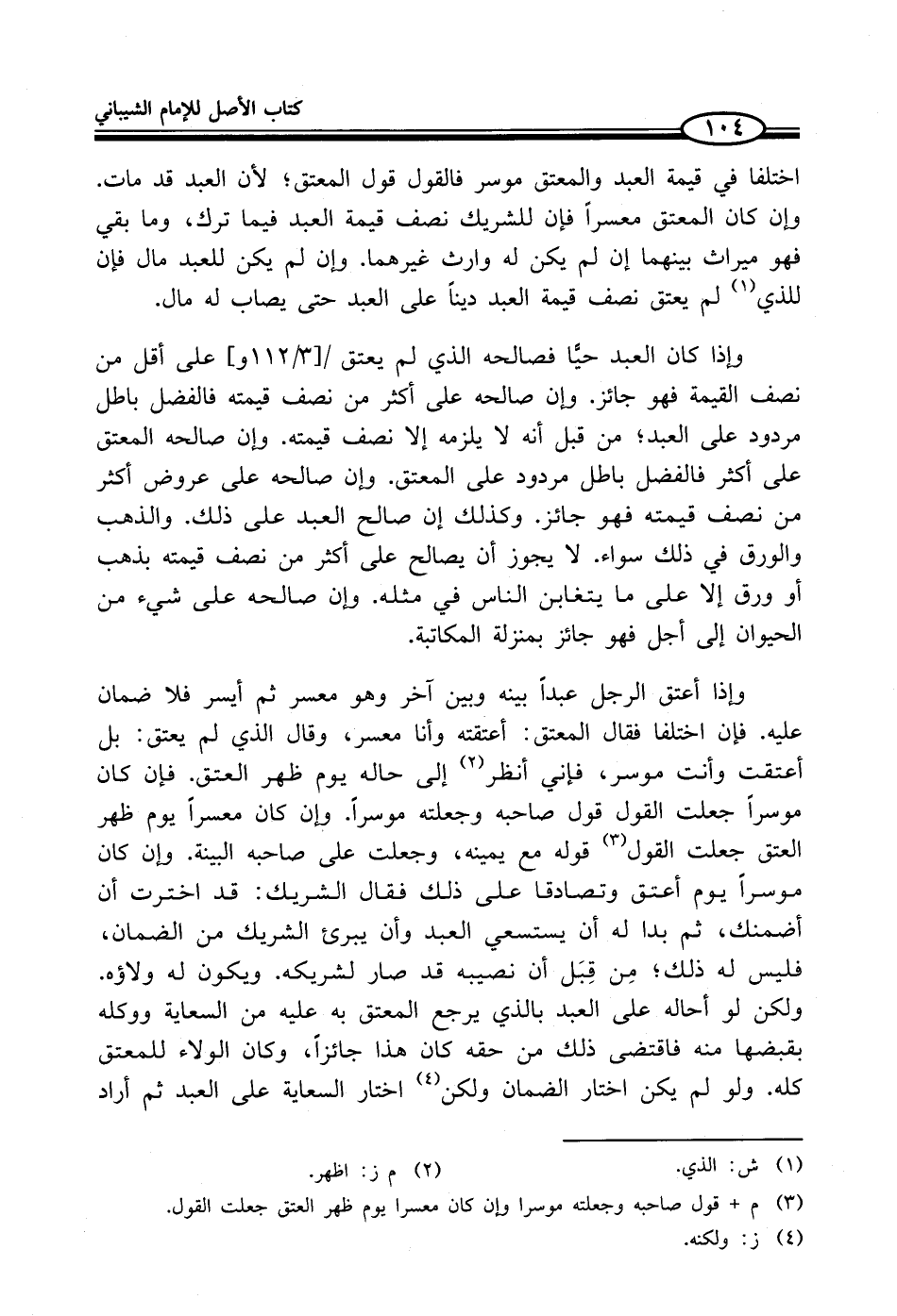 وإذا أعتق الرجل عبداً بينه وبين آخر وهو معسر ثم أيسر فلا ضمان عليه. فإن اختلفا فقال المعتق: أعتقته وأنا معسر، وقال الذي لم يعتق: بل أعتقت وأنت موسر، فإني أنظر (¬2) إلى حاله يوم ظهر العتق. فإن كان موسراً جعلت القول قول صاحبه وجعلته موسراً. وإن كان معسراً يوم ظهر العتق جعلت القول (¬3) قوله مع يمينه، وجعلت على صاحبه البينة. وإن كان موسراً يوم أعتق وتصادقا على ذلك فقال الشريك: قد اخترت أن أضمنك، ثم بدا له أن يستسعي العبد وأن يبرئ الشريك من الضمان، فليس له ذلك؛ مِن قِبَل أن نصيبه قد صار لشريكه. ويكون له ولاؤه. ولكن لو أحاله على العبد بالذي يرجع المعتق به عليه من السعاية ووكله بقبضها منه فاقتضى ذلك من حقه كان هذا جائزاً، وكان الولاء للمعتق كله. ولو لم يكن اختار الضمان ولكن (¬4) اختار السعاية على العبد ثم أراد