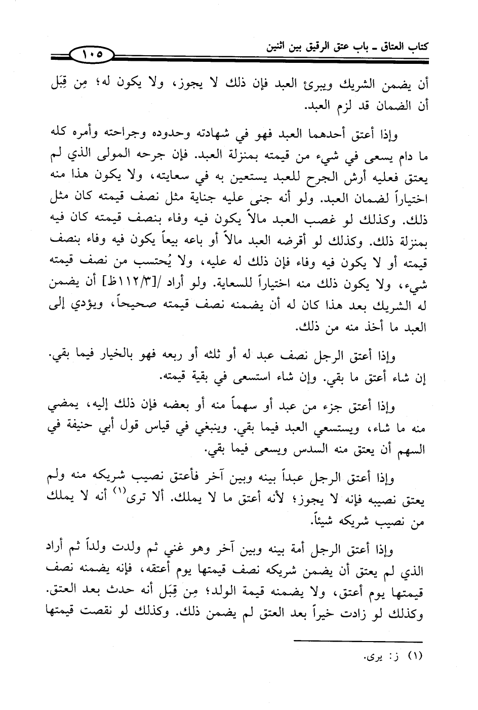 أن يضمن الشريك ويبرئ العبد فإن ذلك لا يجوز، ولا يكون له؛ مِن قِبَل أن الضمان قد لزم العبد.